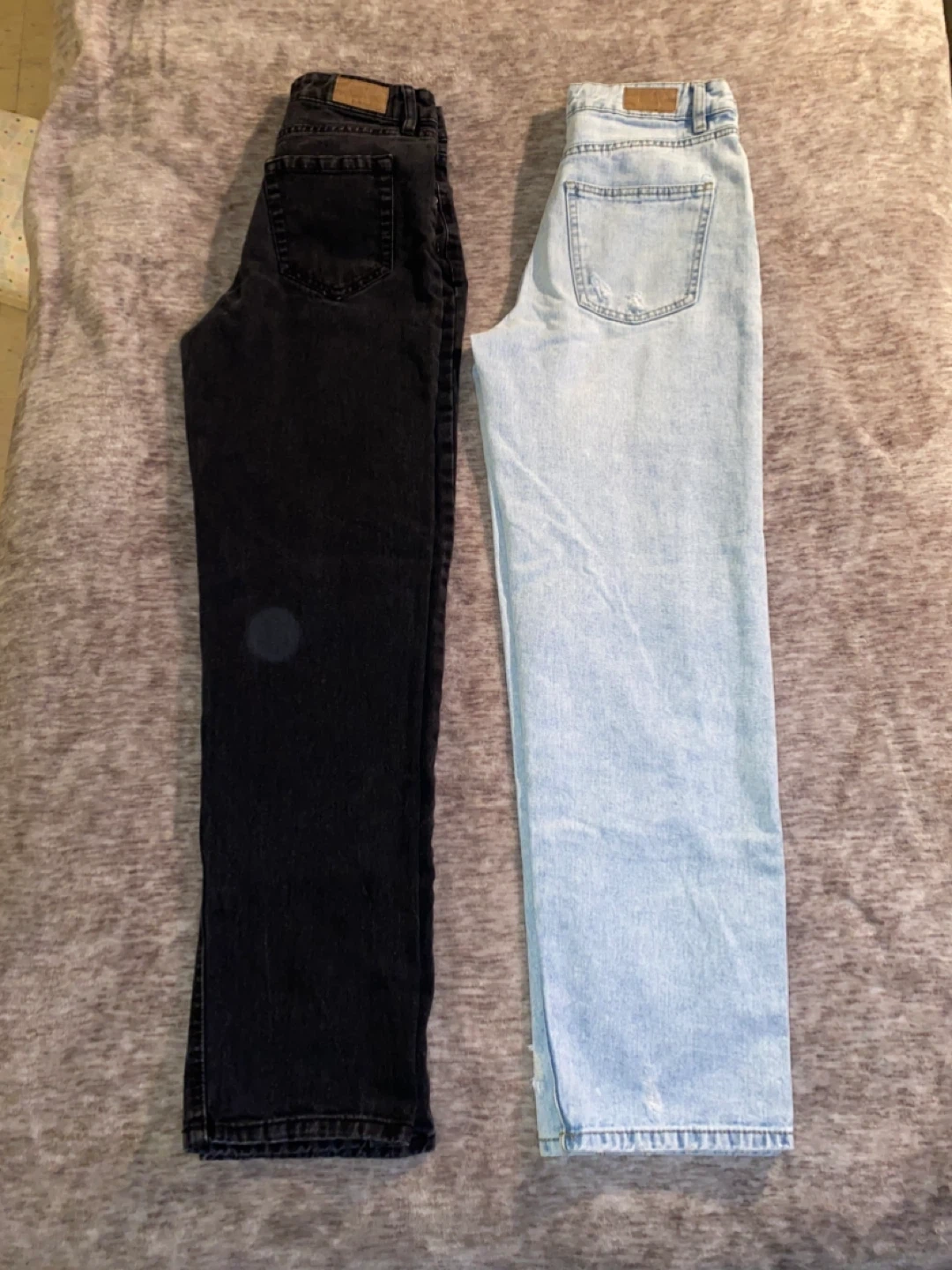 Two pairs of Straight High Rise Bluenotes denim jeans for sale! One pair is a light wash and the other is a dark wash. Both are size 0 (25W). Great condition,No damages or stains! Good for cold work days or Dressing them up with a holiday sweater or Crop top for a special event. Material:Cotton Denim Colour:Light wash, Dark Wash Condition: 10/10