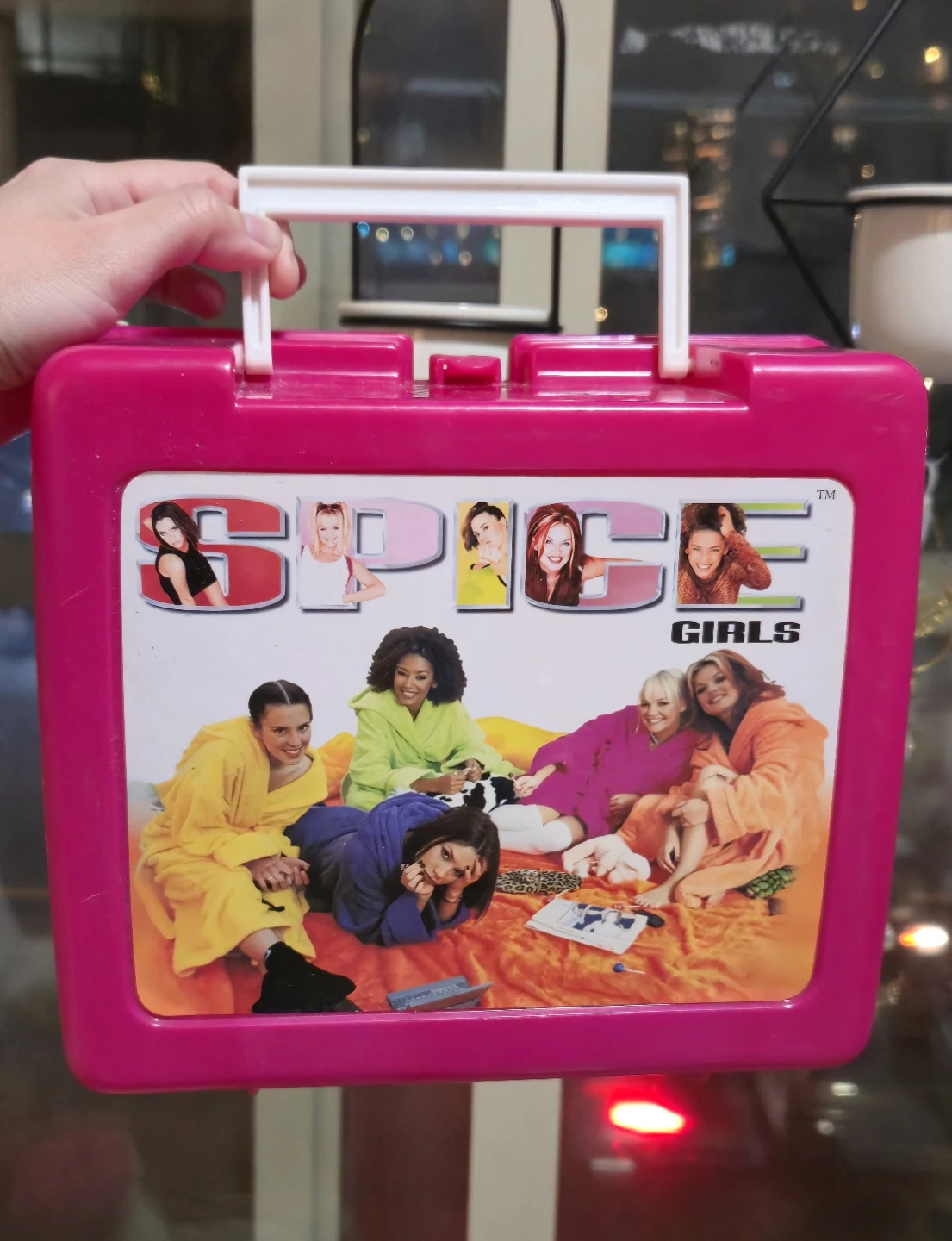 Selling a rare 1990's Spice Girls lunchbox in hot pink.