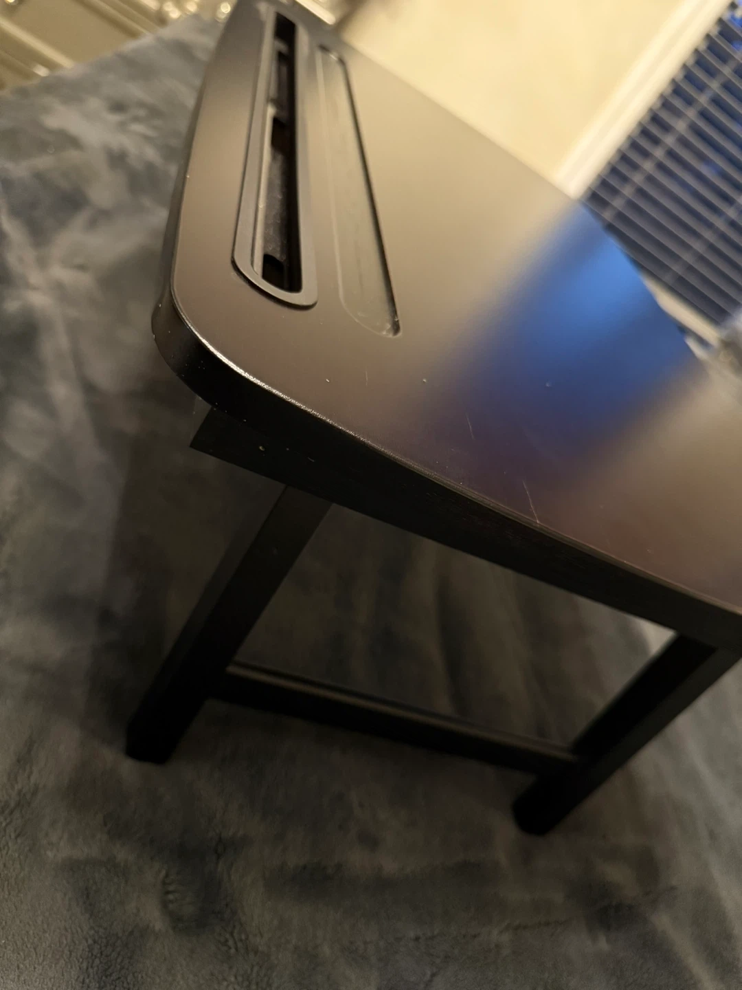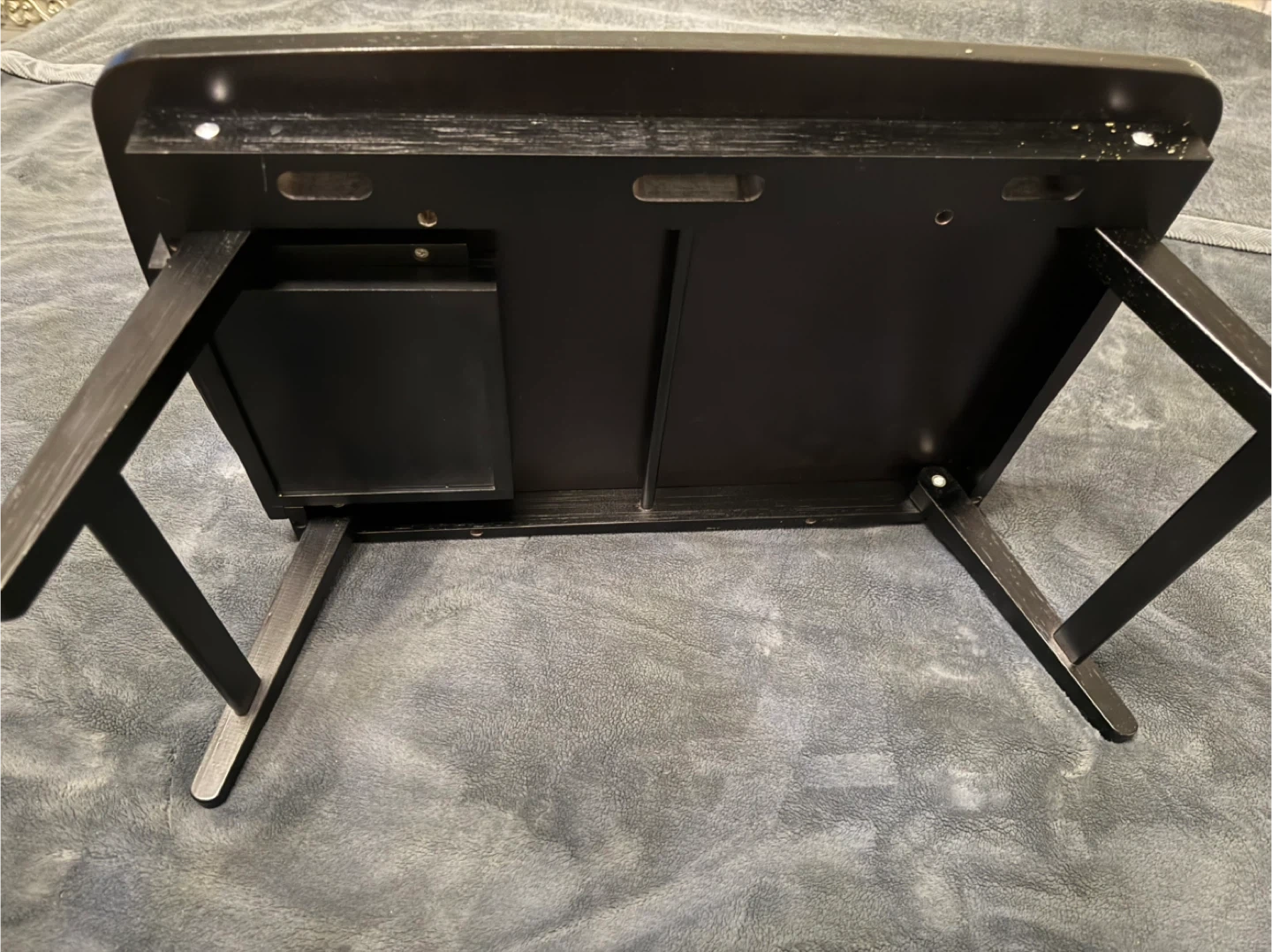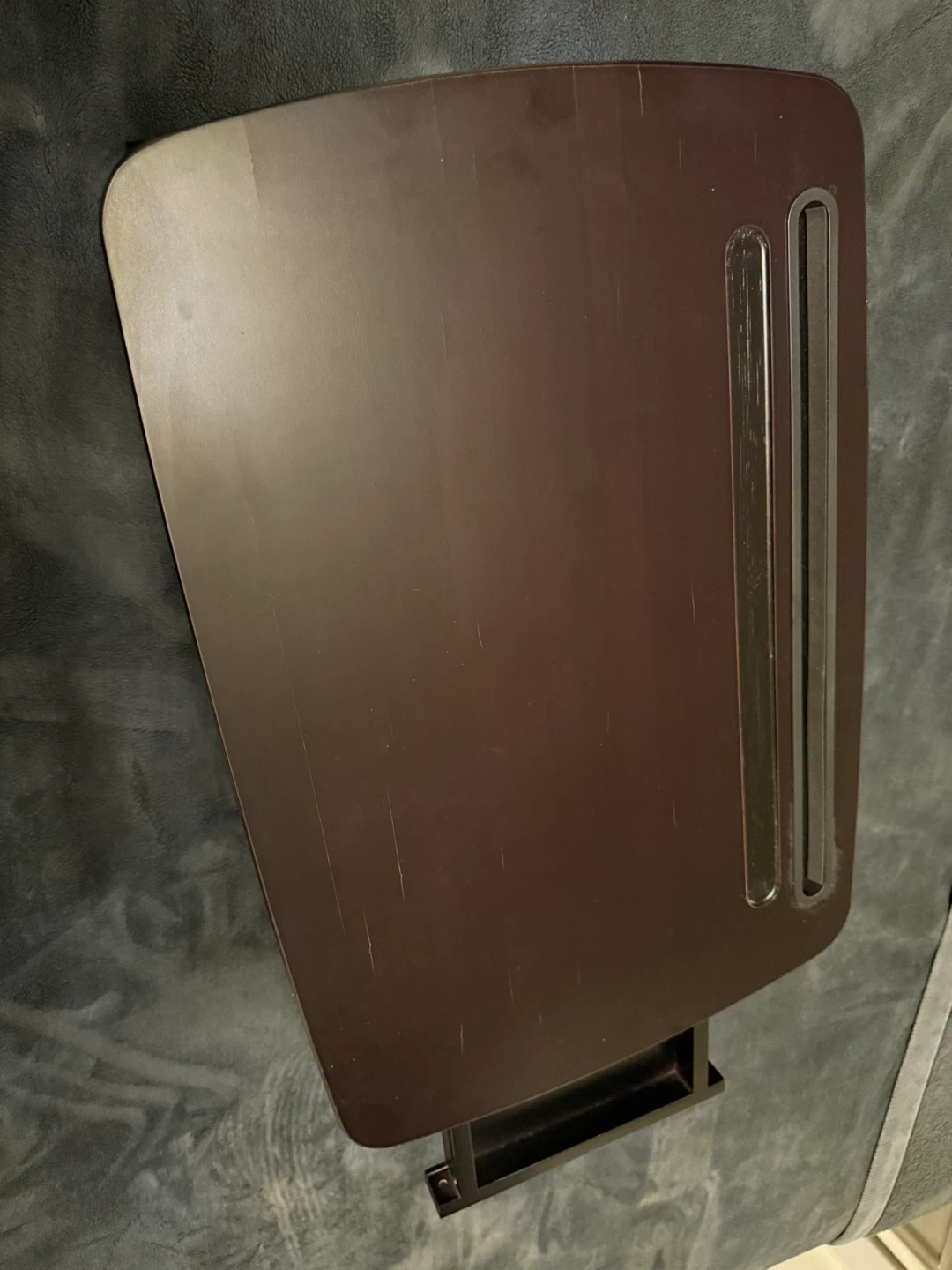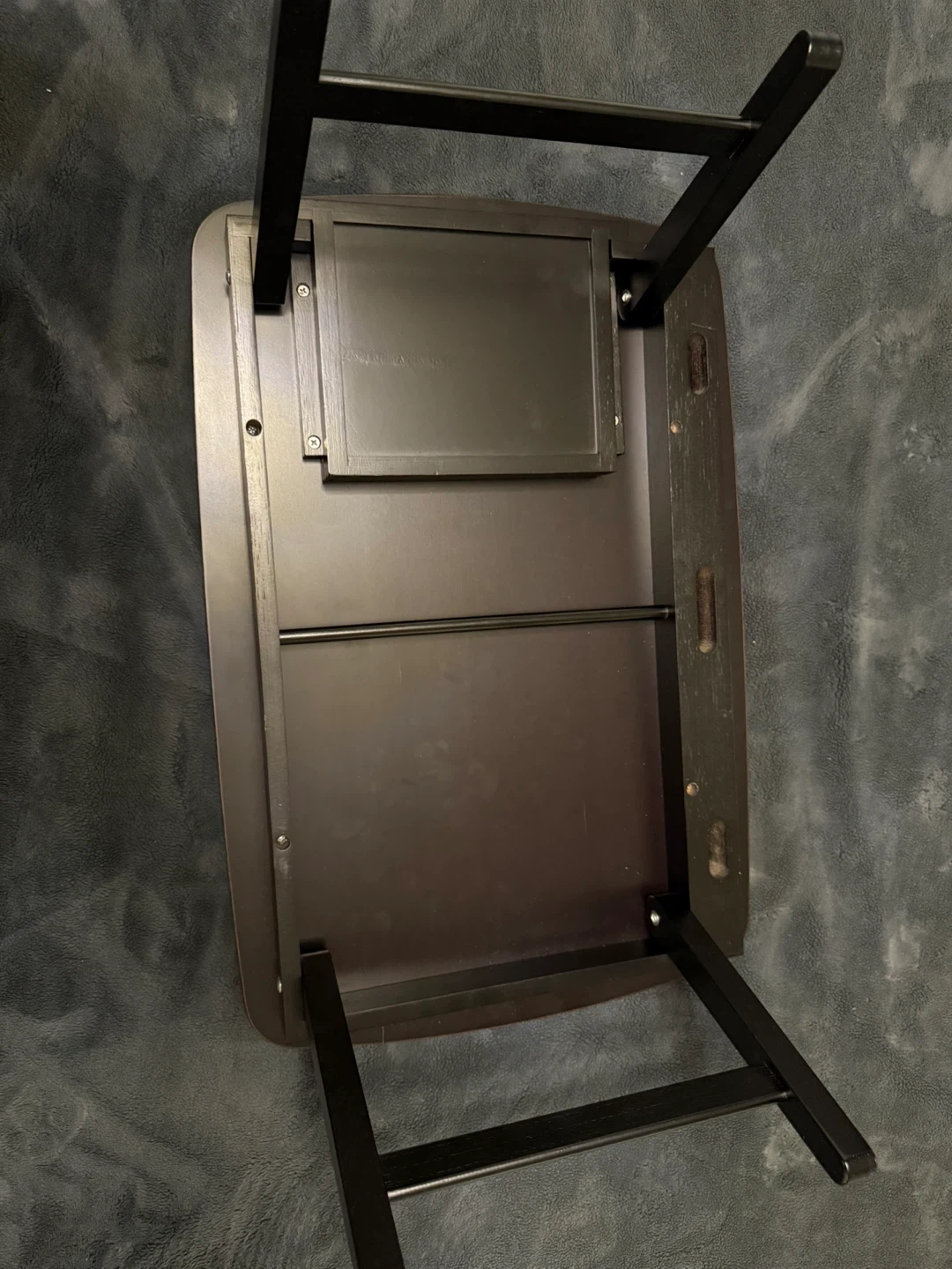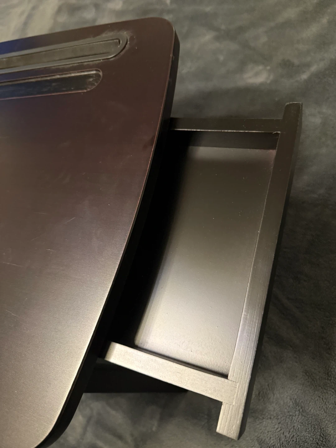 Folding legs, with hidden storage drawer, pen slot, tablet slot, used only a couple of times.