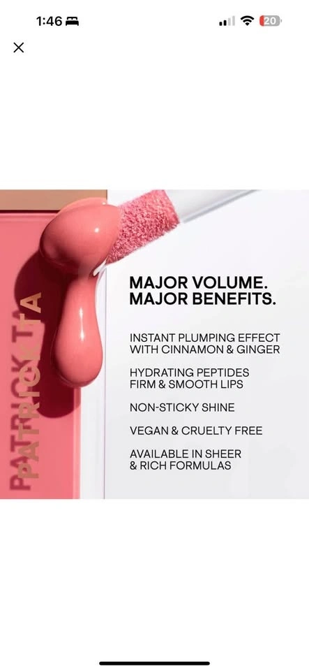 What it is: A hydrating, high-shine plumping lip gloss that gives the appearance of fuller, poutier, more voluminous lips, available in a sheer and rich formula.