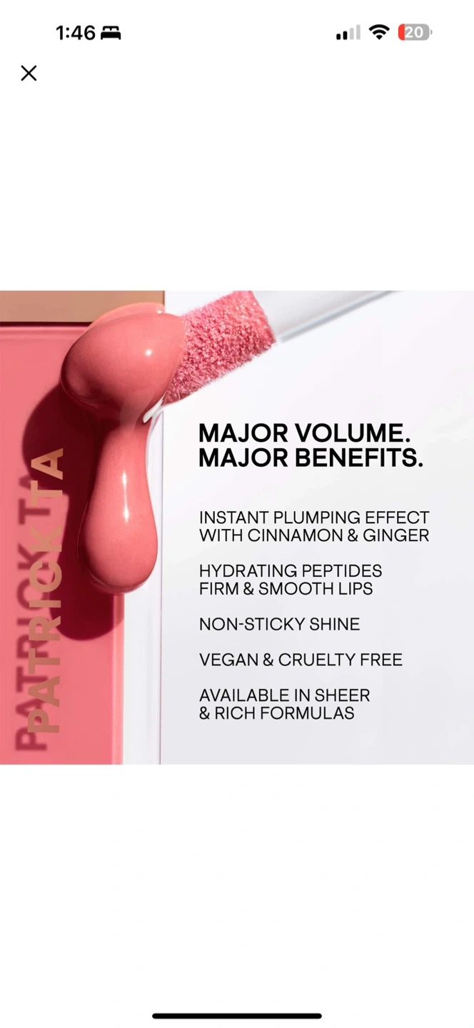 I'm selling a Patrick Ta Major Volume Plumping Gloss! It gives an instant plumping effect with cinnamon and ginger. It's also vegan and cruelty-free!