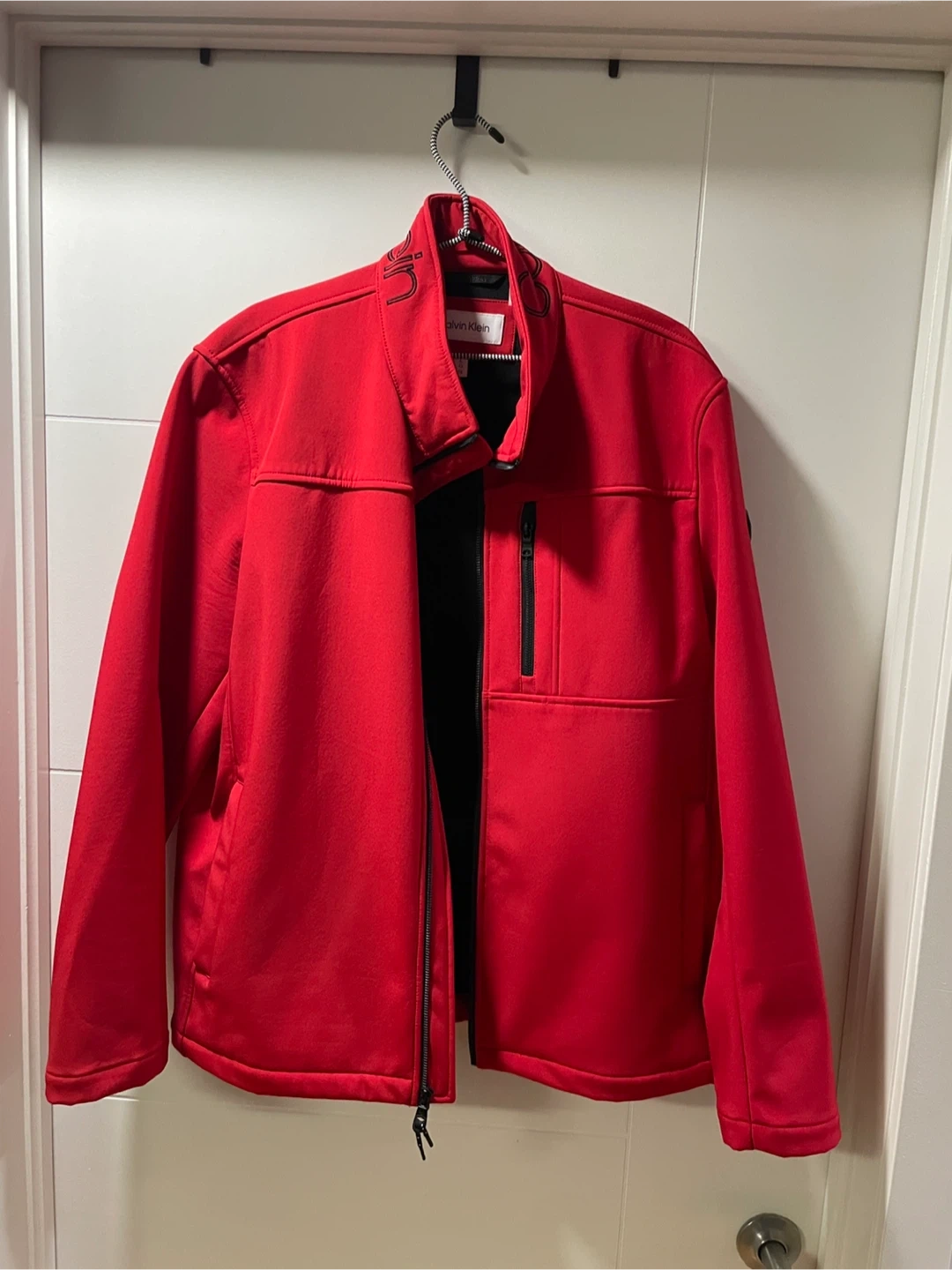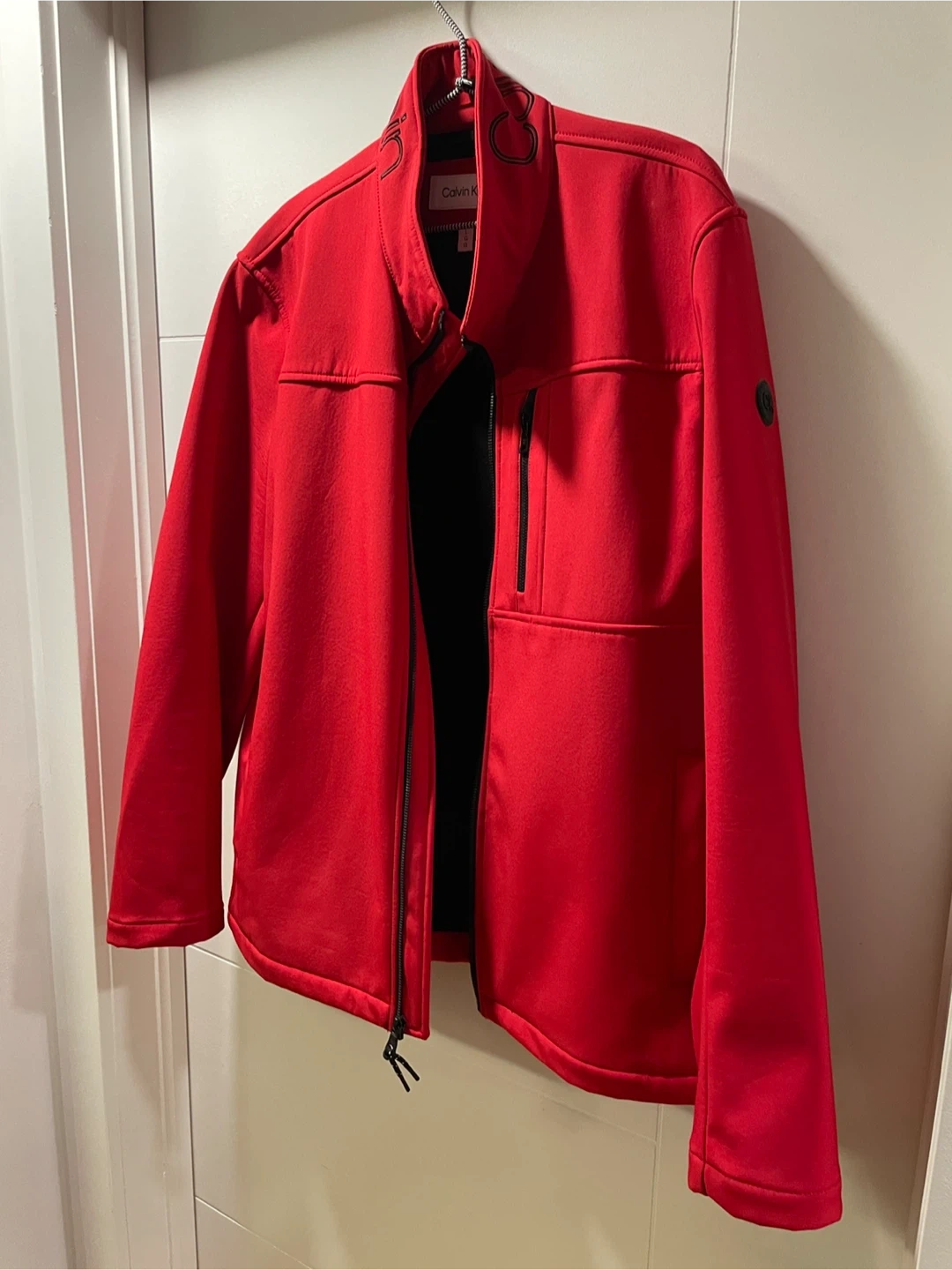 A stylish red softshell jacket from Calvin Klein! It's in great condition (worn once) and ready for a new owner. Perfect for adding a pop of Canadian 🇨🇦colour to your wardrobe.
