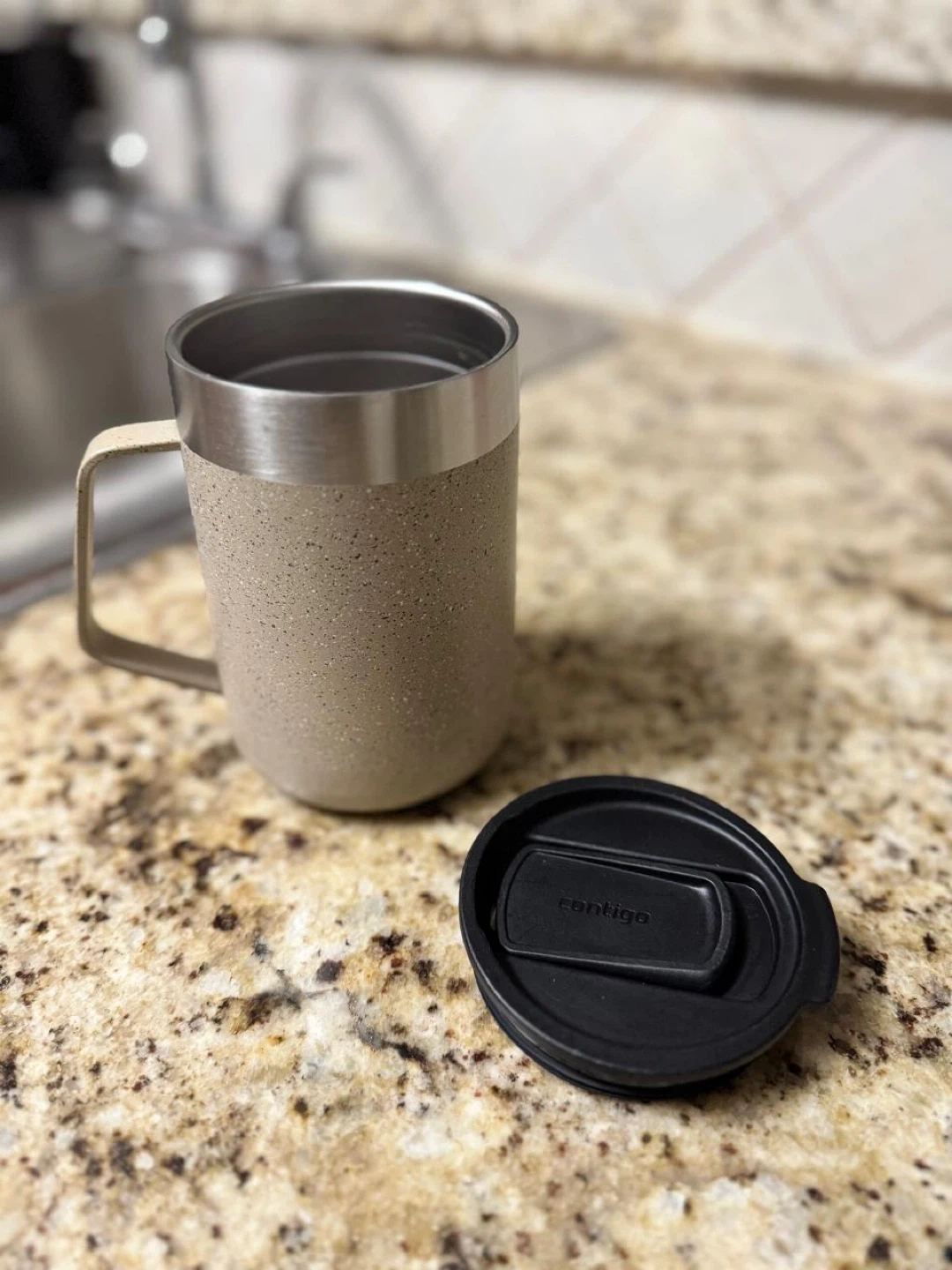 Selling a Contigo travel mug! It's in great shape and comes with a lid to keep your drinks secure on the go. Perfect for keeping your coffee hot on those chilly mornings!