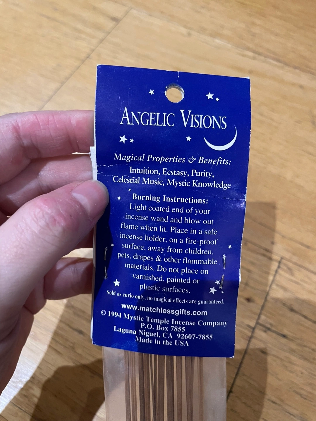 12-13 angelic visions incense. Given to me but I don’t use incense.