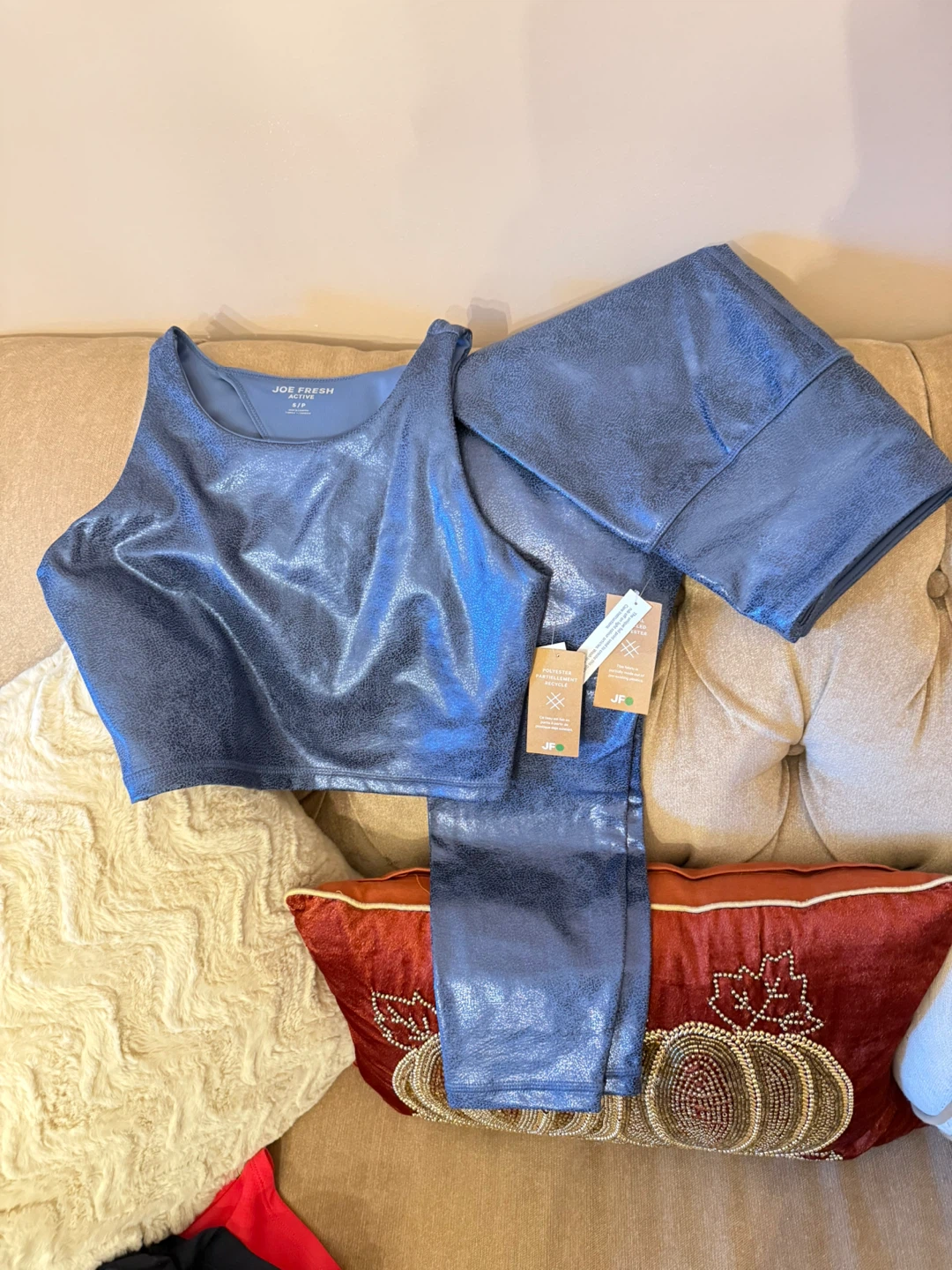 Selling a Joe Fresh Active set in size small! The set includes a top and leggings, perfect for workouts or casual wear. The material is comfortable and stylish. Great for anyone looking for a new activewear set!