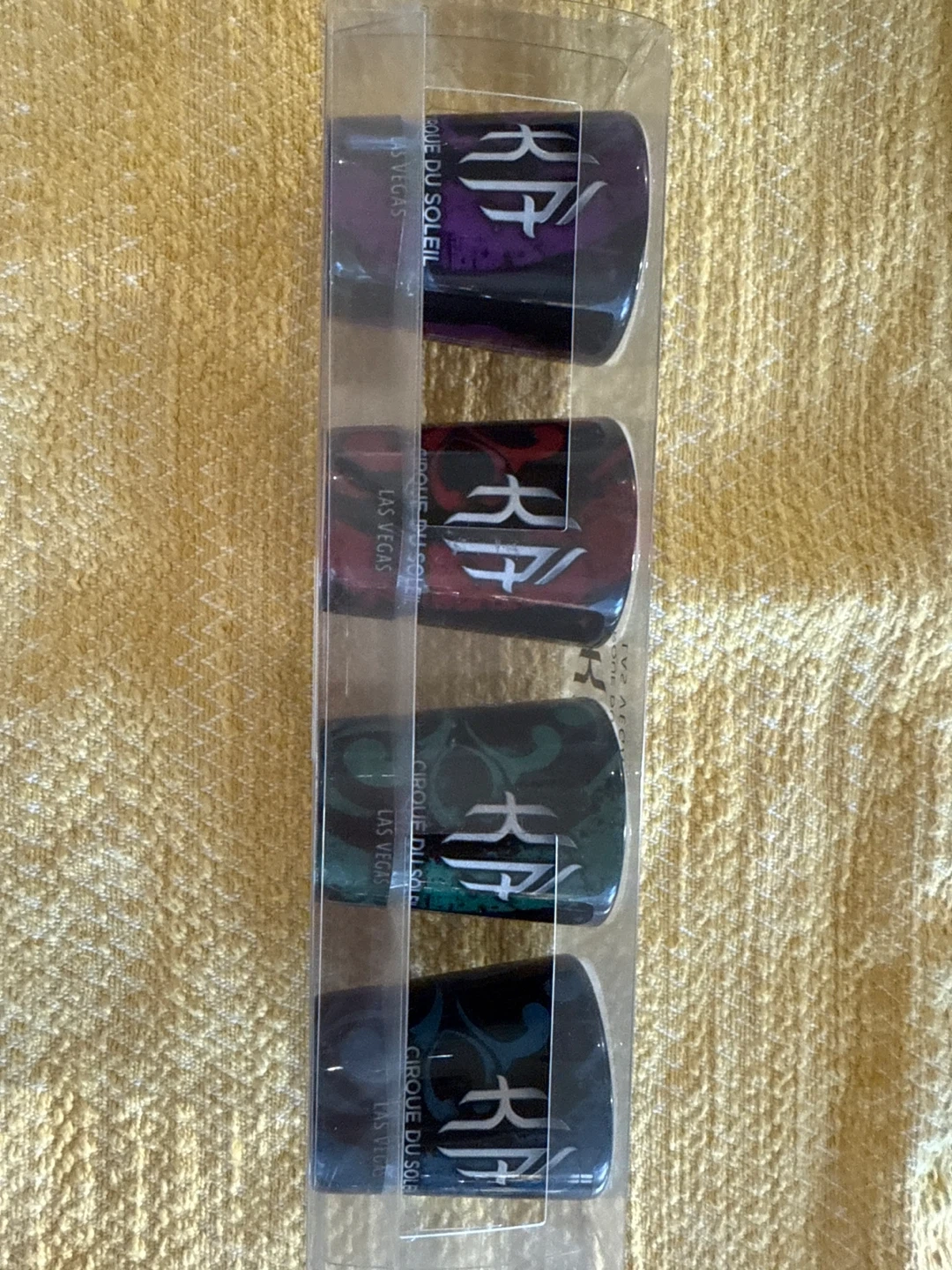 Selling a set of Cirque du Soleil RA shot glasses. They come in their original packaging. Made in Thailand. The original price was $20.00