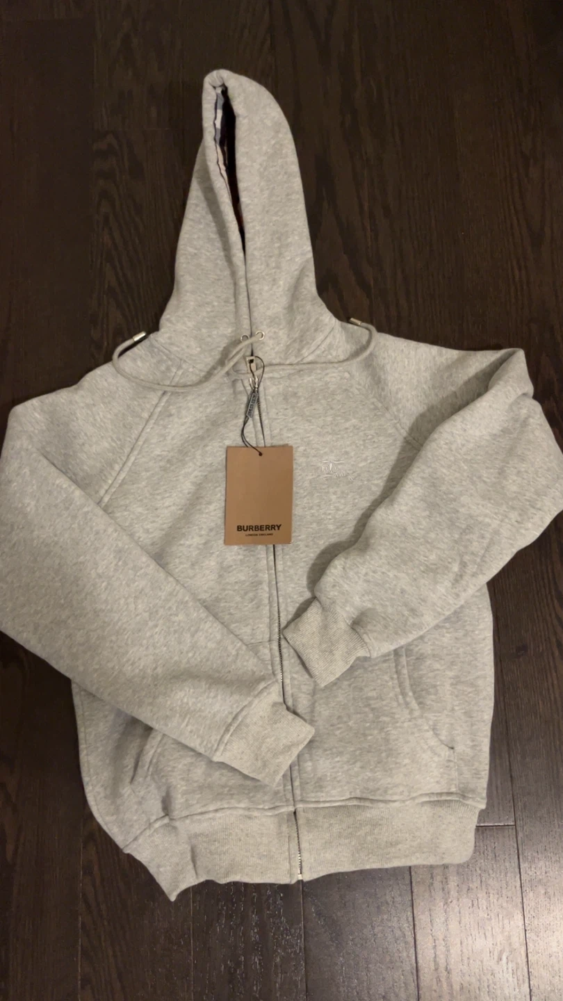 Selling a brand new Burberry zip-up hoodie! It's a lovely grey colour and still has the tags attached. Perfect for layering or wearing on its own