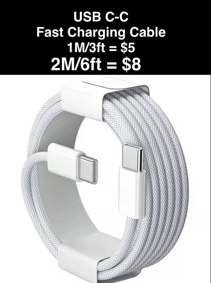 White USB-C to USB-C fast charging cable. Braided cord charger. Cash preferred. It is a new product, for pick up only. I am near 255 Tache Ave in St Boniface. Can share the exact address when you’re coming to pick up. Please check out my other ads too. Thank you.
