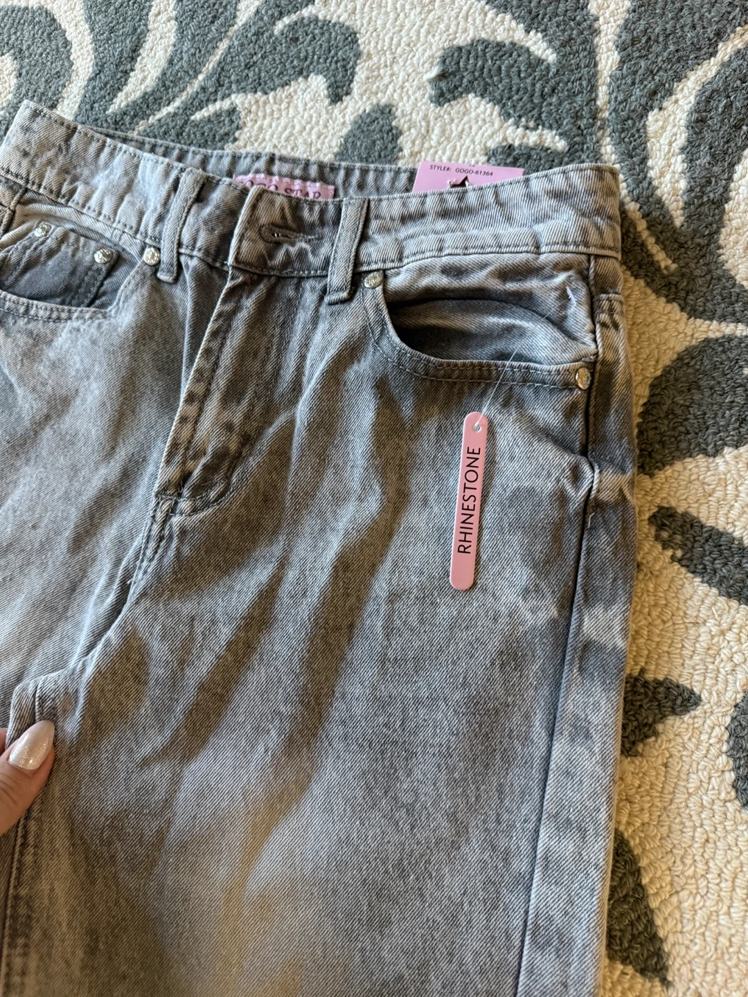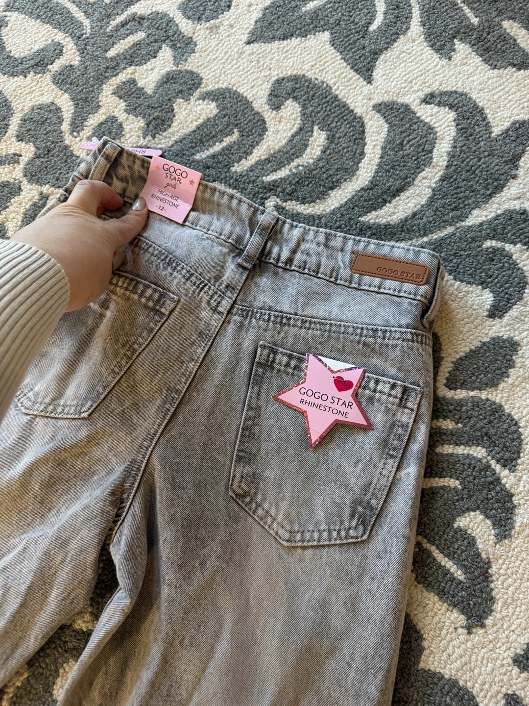 Selling a pair of GOGO STAR jeans in size 12 years old.They have a stylish rhinestone detail and are made of 70% cotton, 20% polyester, and 10% viscose. They are new with tag 🏷️