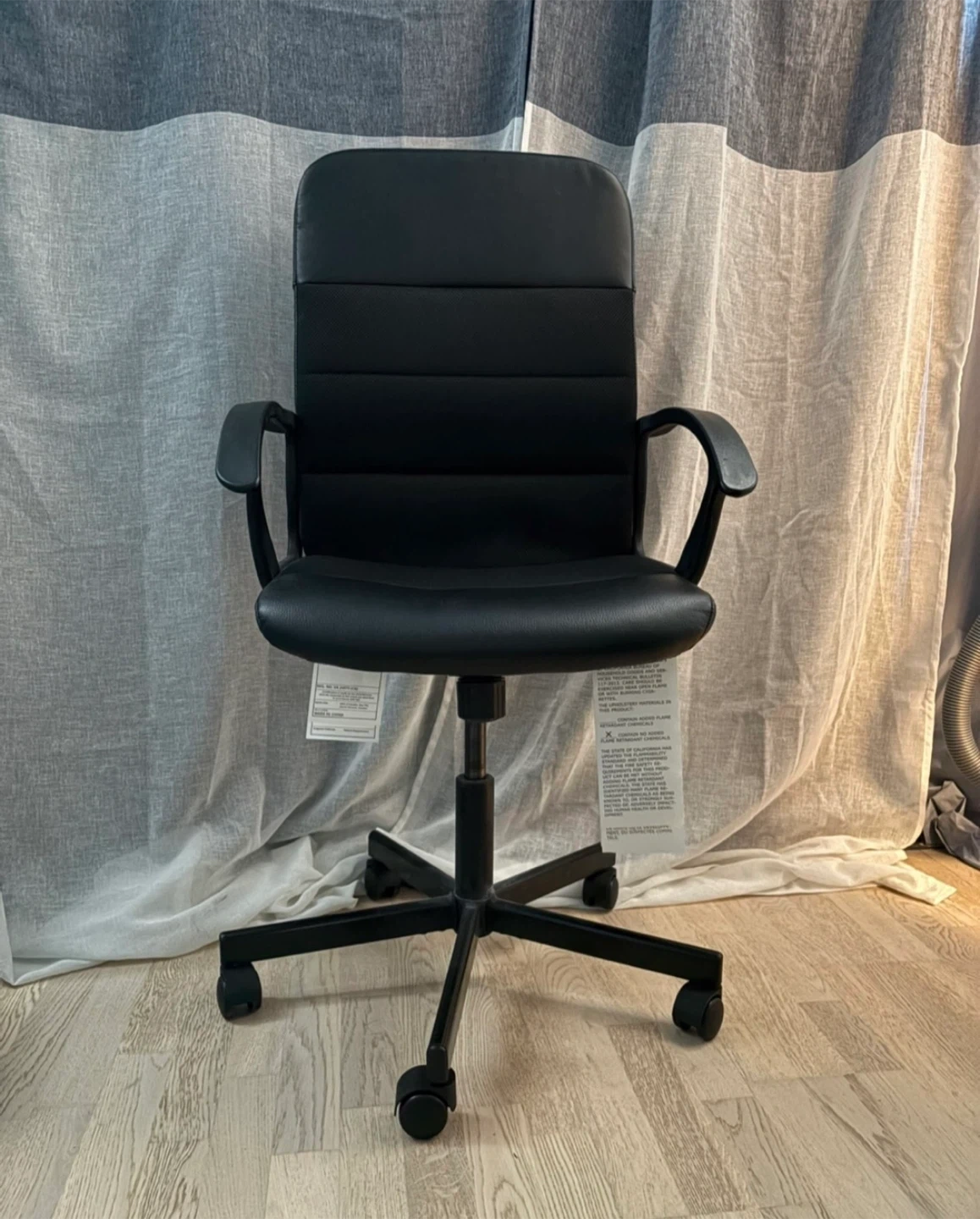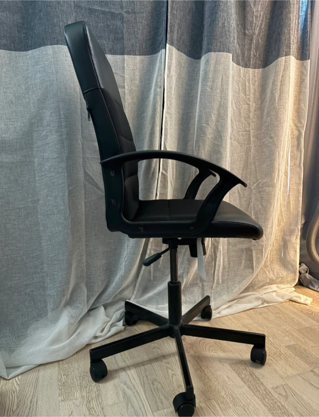 Looking to sell this office chair! It's in great condition and would be perfect for a home office setup or student. It's black and has a comfortable design.