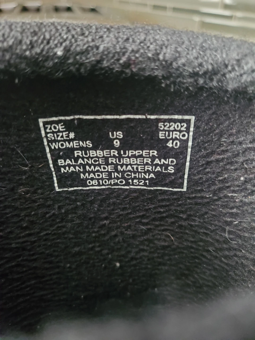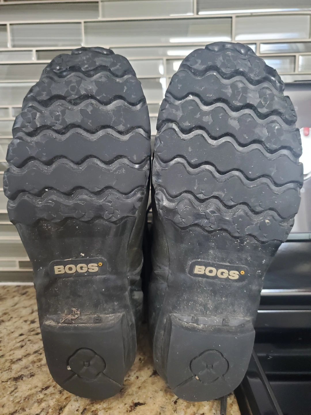 Selling a pair of Bogs rubber boots in black. They're a women's size US 9 / Euro 40. The upper is made of rubber, and the balance is rubber and man-made materials.