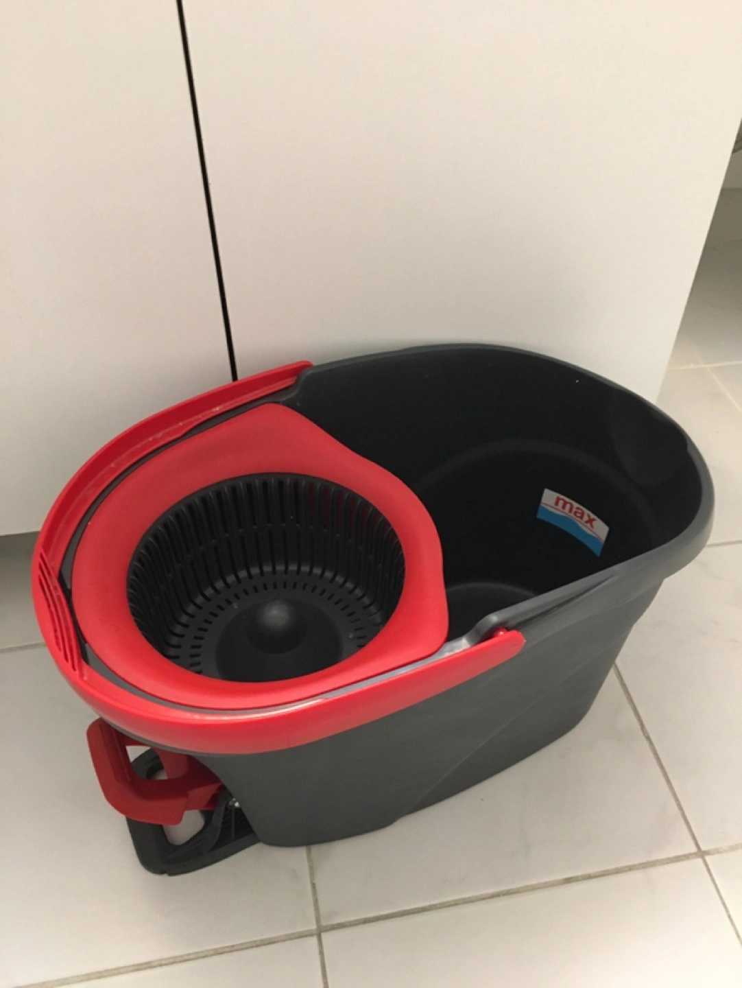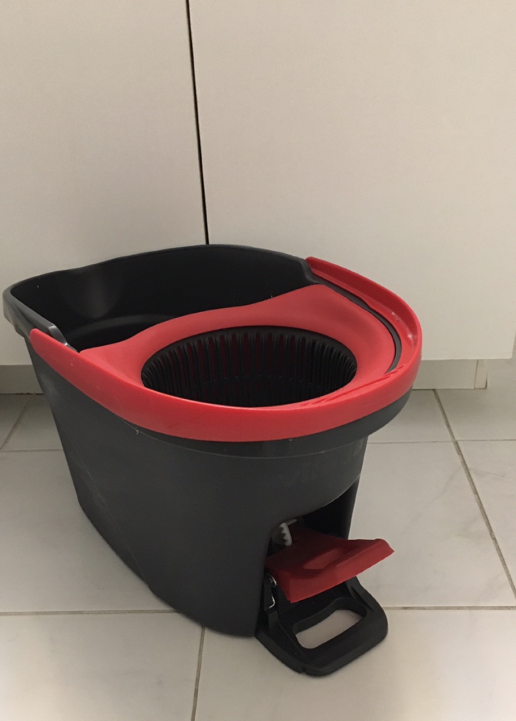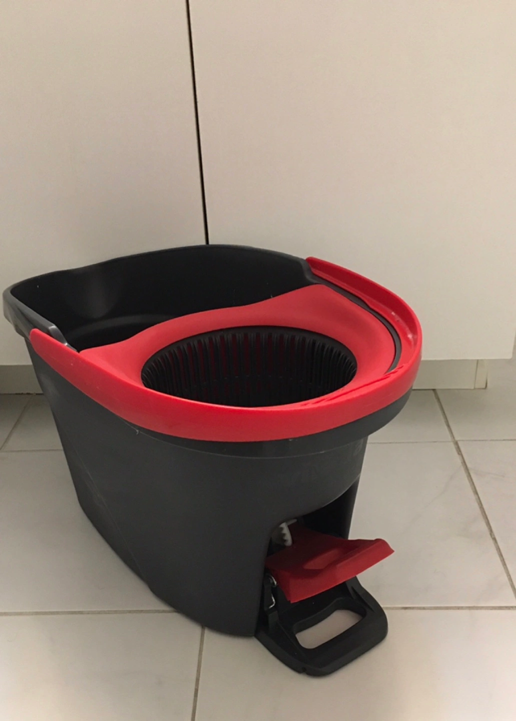 Selling a mop bucket with a wringer. It's in great condition and ready to help with your cleaning needs! The bucket is black and red. Mop not included.