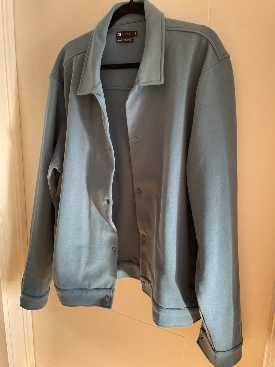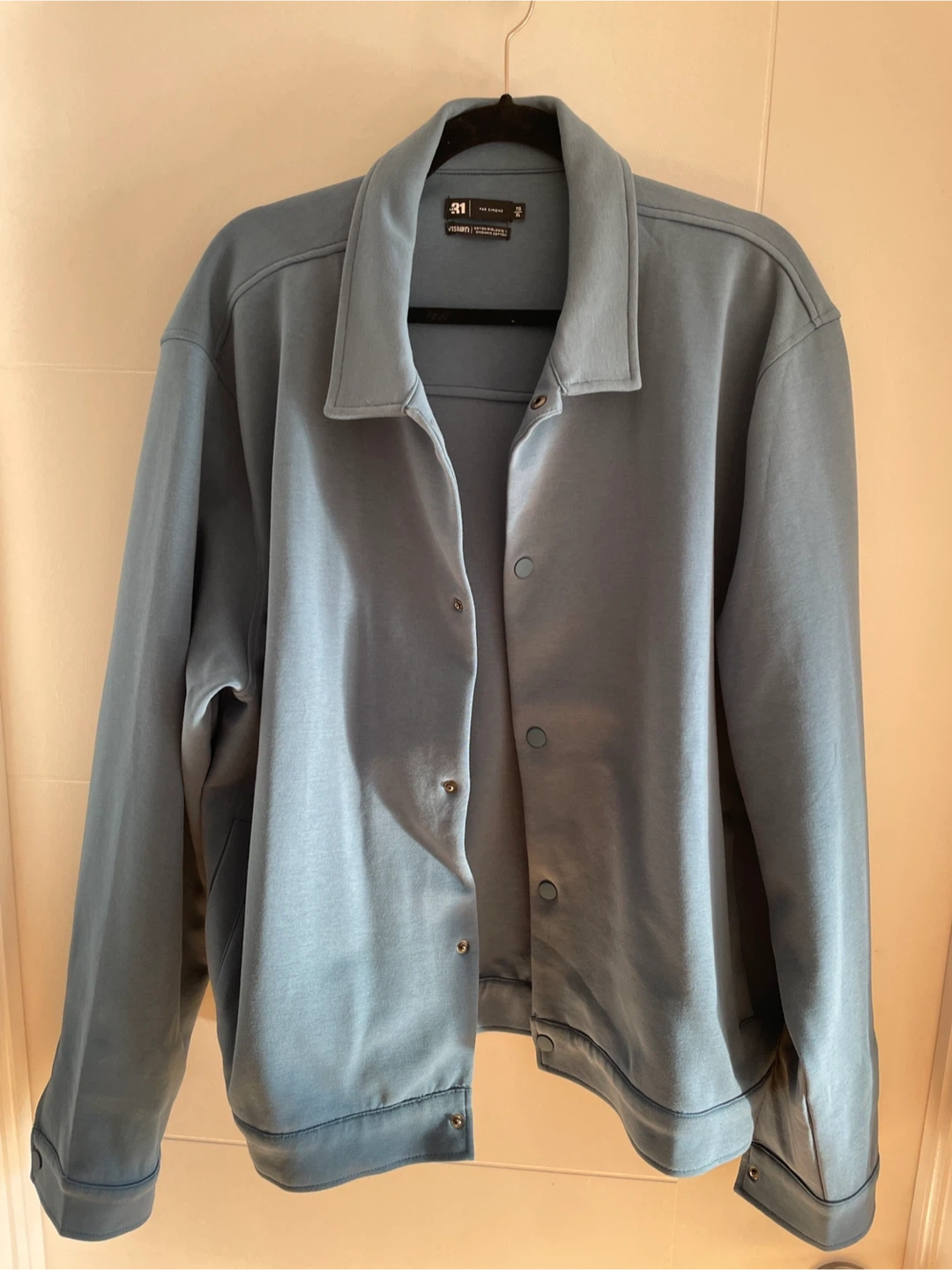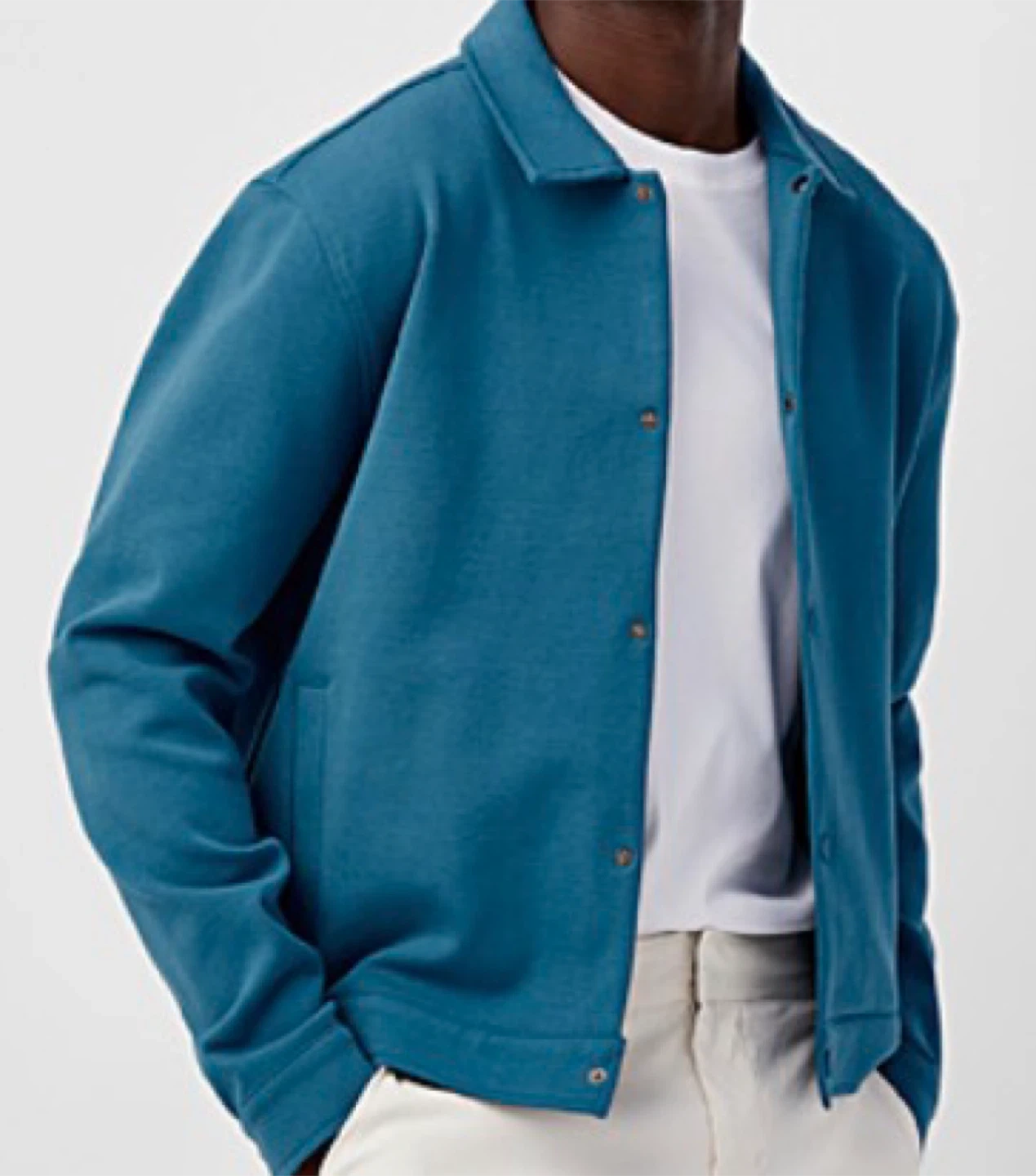 Here's a stylish blue structured jersey men’s jacket from Le 31 by Simons.