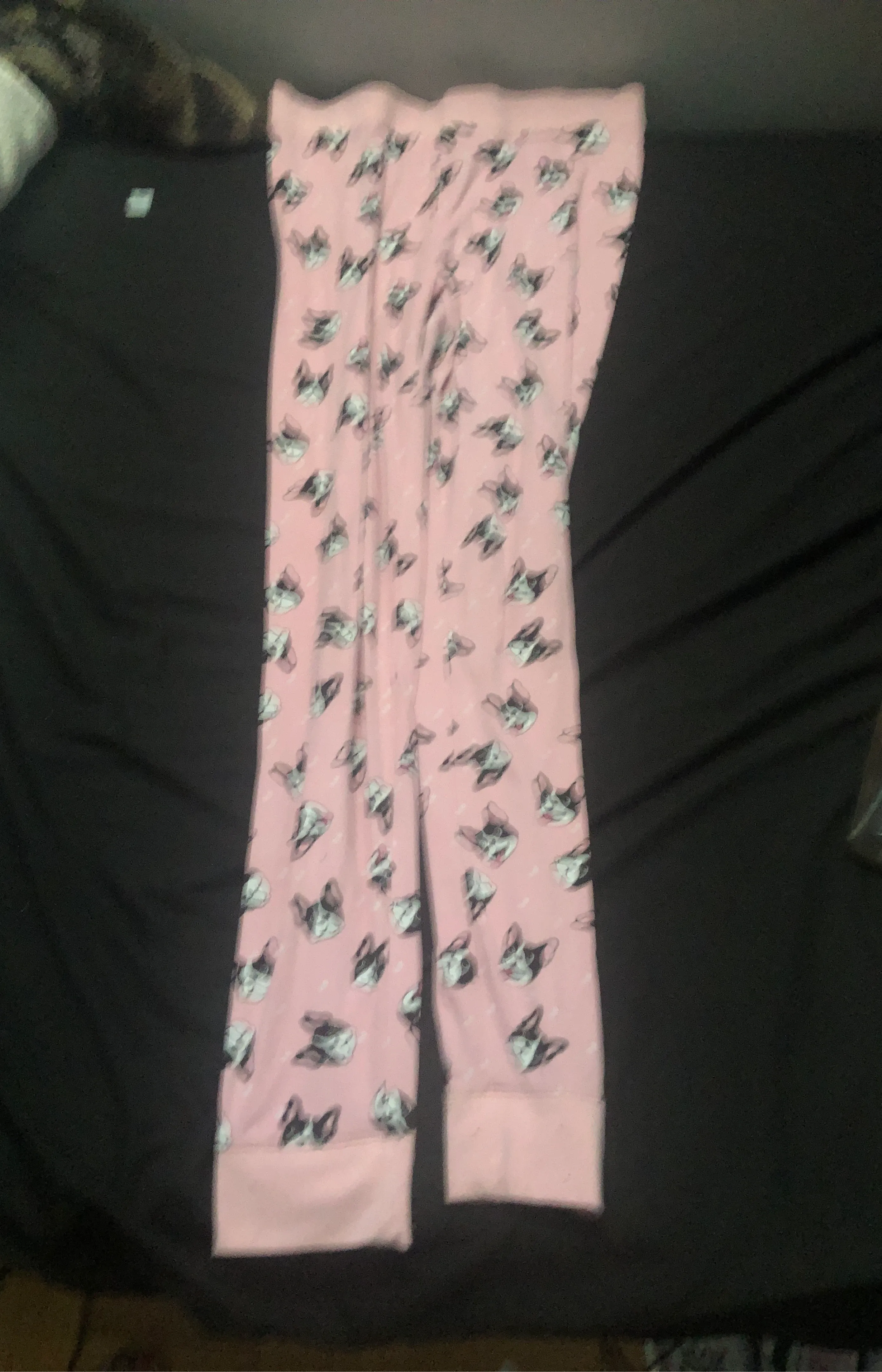 Cute pair of pink pajama pants with a dog print! They're super comfy and perfect for lounging around at home. They're in great condition!