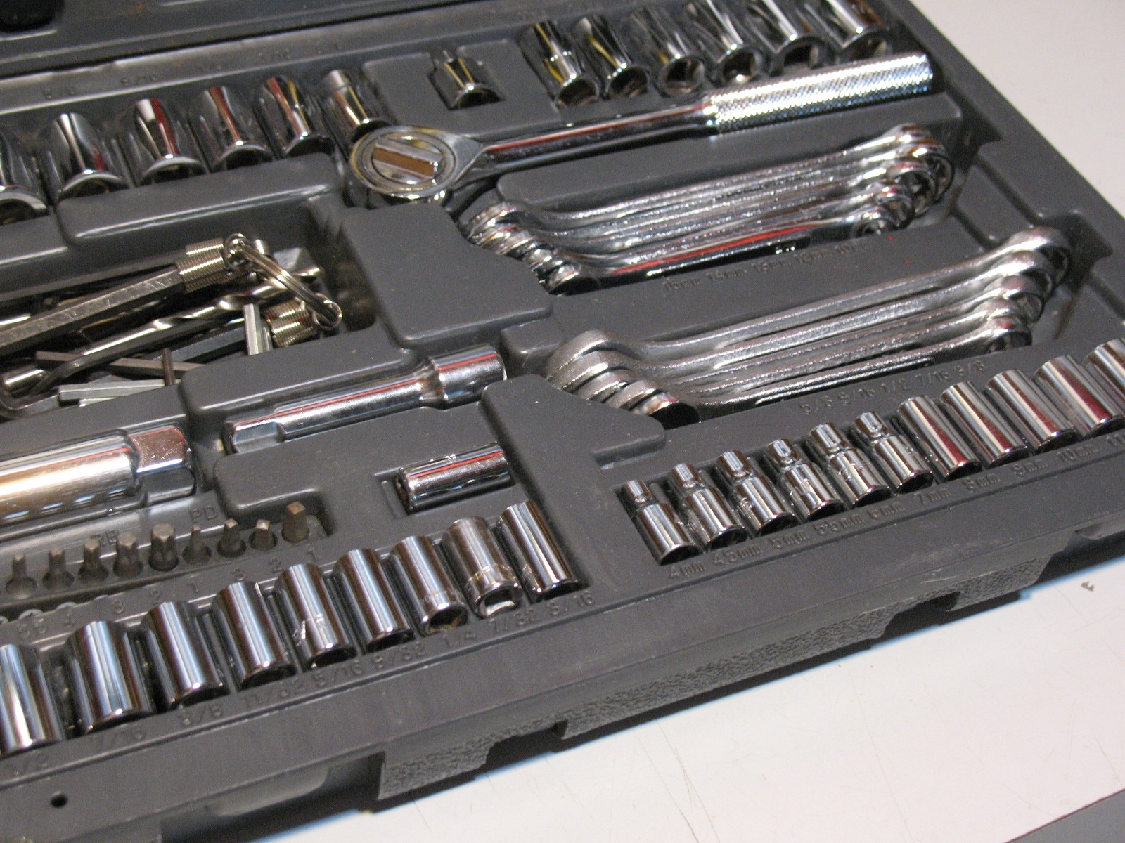 98 Piece Socket/Wrench/Tools in Storage Case, almost New.