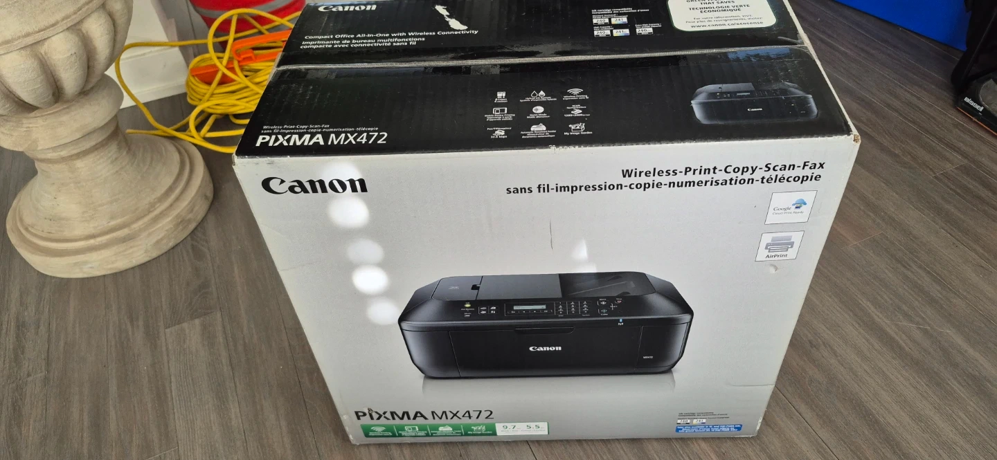Selling a Canon PIXMA MX472 All-in-One wireless printer! It can print, copy, scan, and fax. It also supports Google Cloud Print and AirPrint. Compact and easy to use
