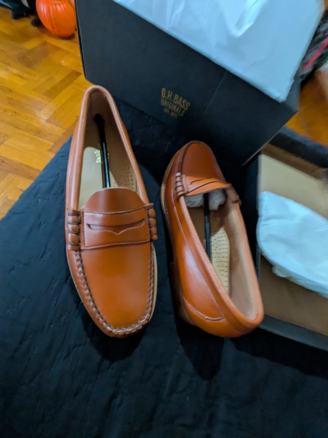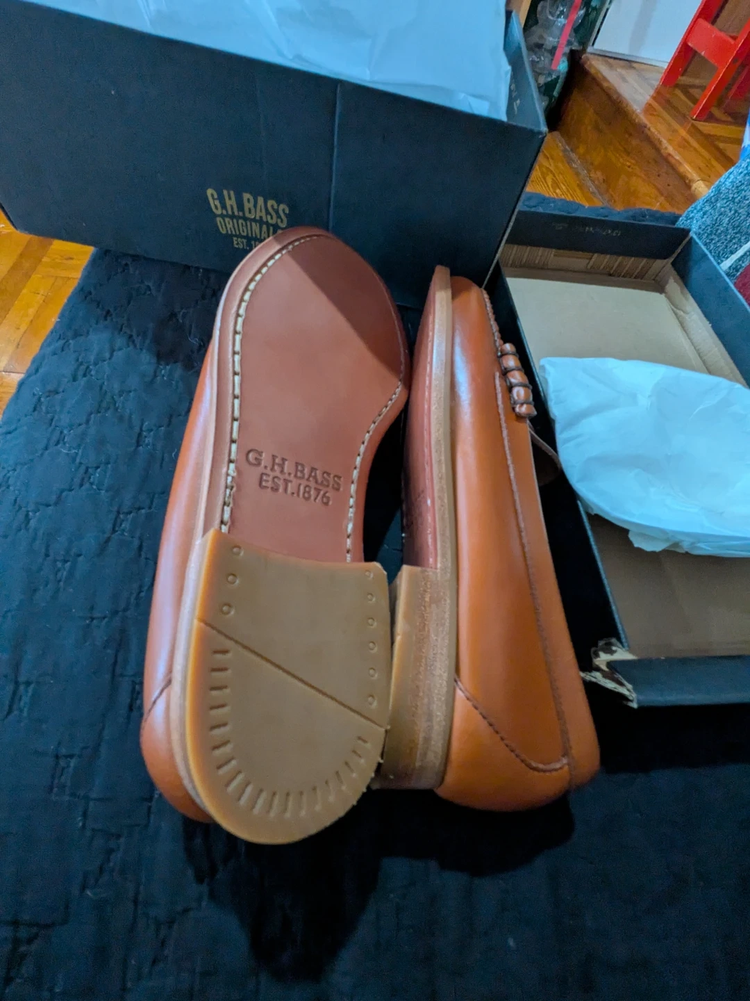 Selling a pair of G.H. Bass Larson Weejun loafers in brown, size US 7. They come with the original box. These classic loafers are in great condition and ready for a new owner!