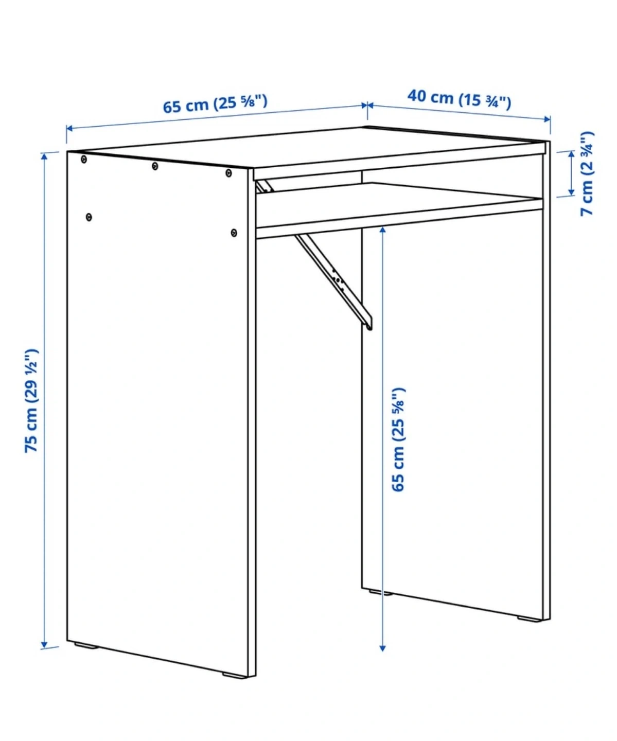 The dimensions are 65 cm (25 5/8") wide, 40 cm (15 3/4") deep, and 75 cm (29 1/2") high.