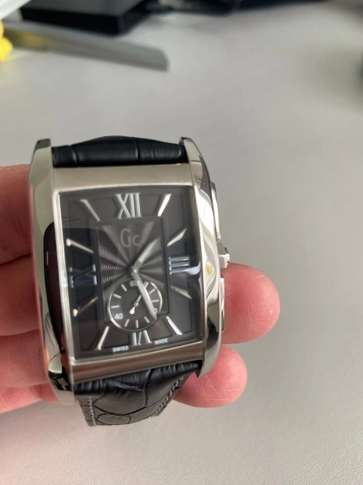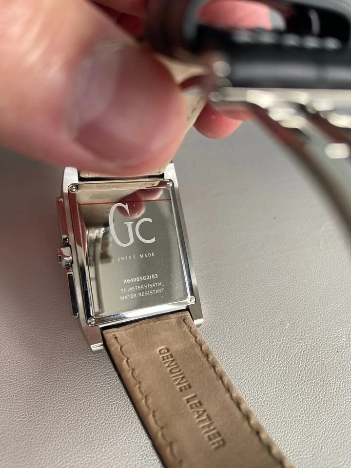 Luxury line Guess Gc (Guess Collection), genuine leather band. Brand new never used (received as gift). Need battery change. Model: X64005G2. Brand new selling at $500+. Need battery change. Pick up near Bayview Ave and Bloomington Road (Use L4E 4R6 for checking location)