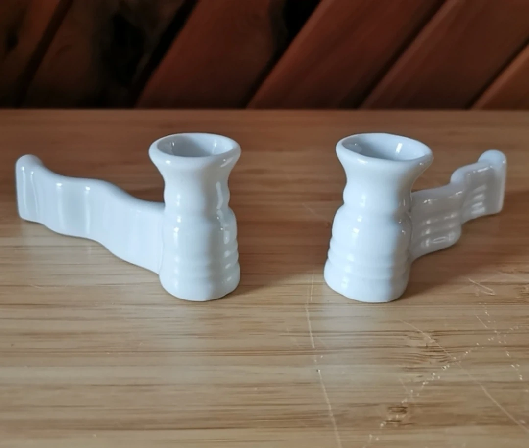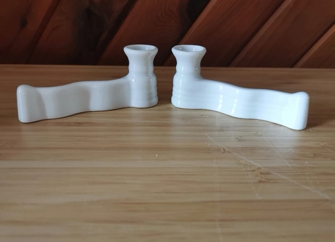 Set Of 2 Small Limoges White Porcelain Portable Candleholder. Also Serves As Cutlery Rest.
