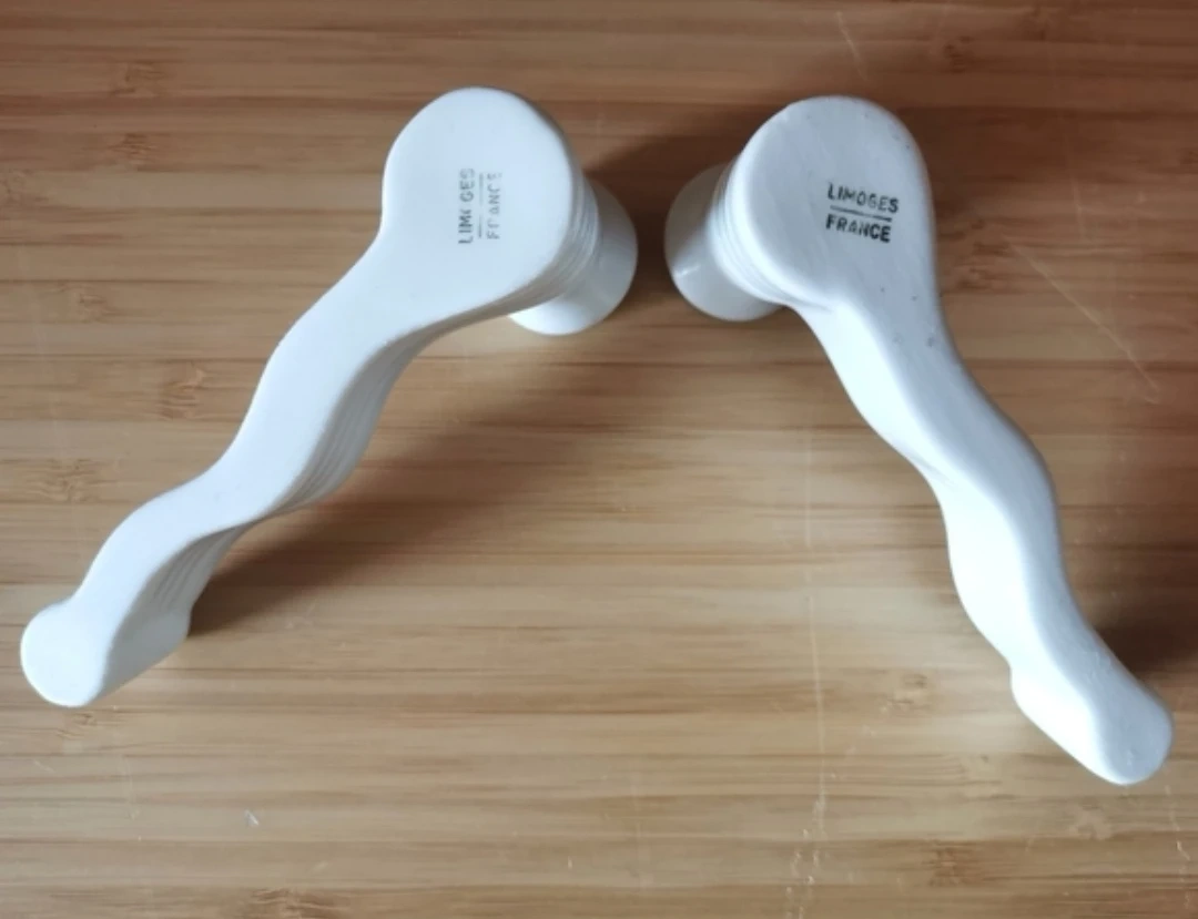 Limoges, France, white porcelain candleholder cutlery rests have been manufactured from the late 19th century through the 1930s for the most sought-after antique pieces, and production continuing to the present day.