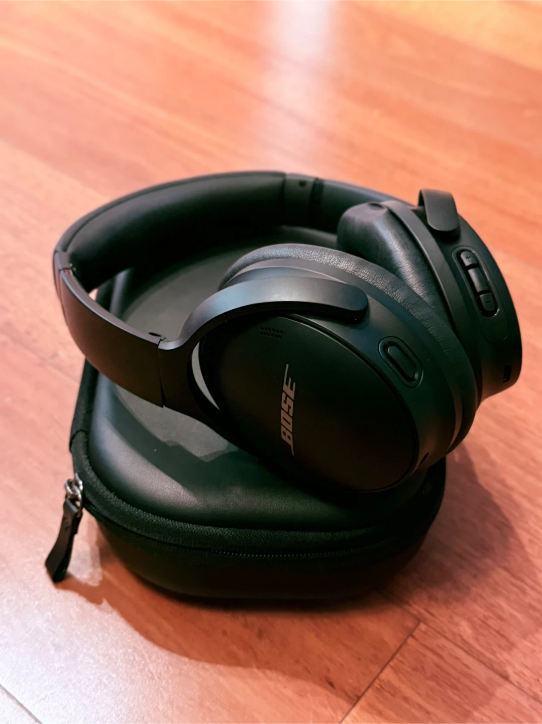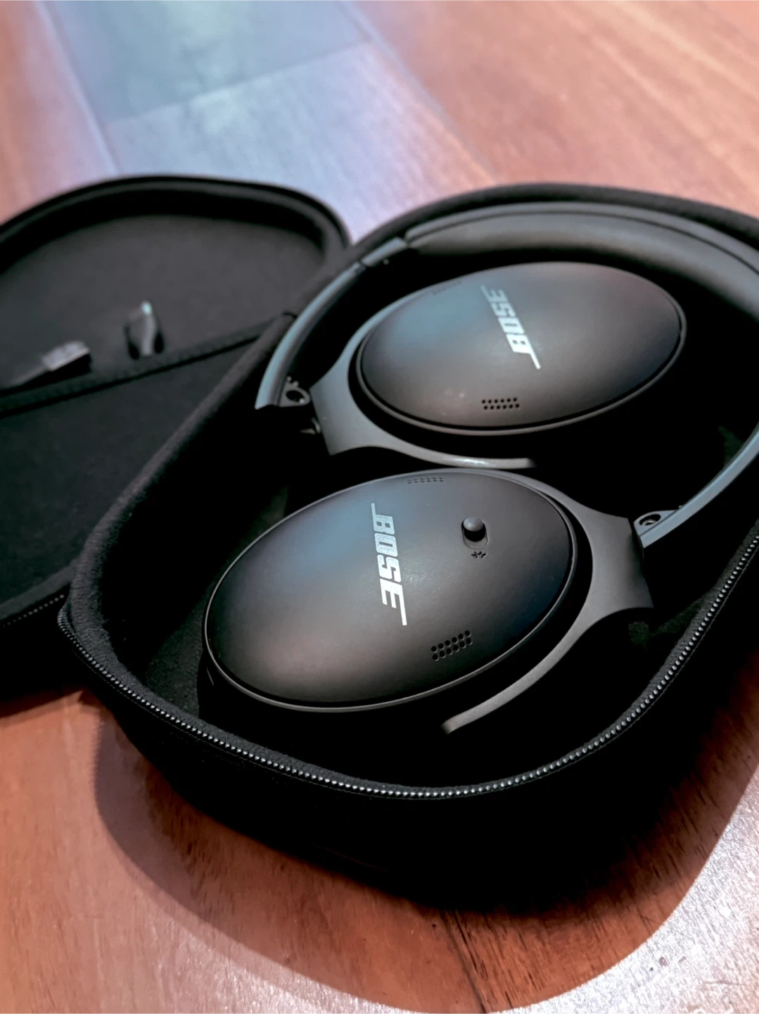 Bose QuietComfort 45 headphones in black. They're in great condition and come with the original case.