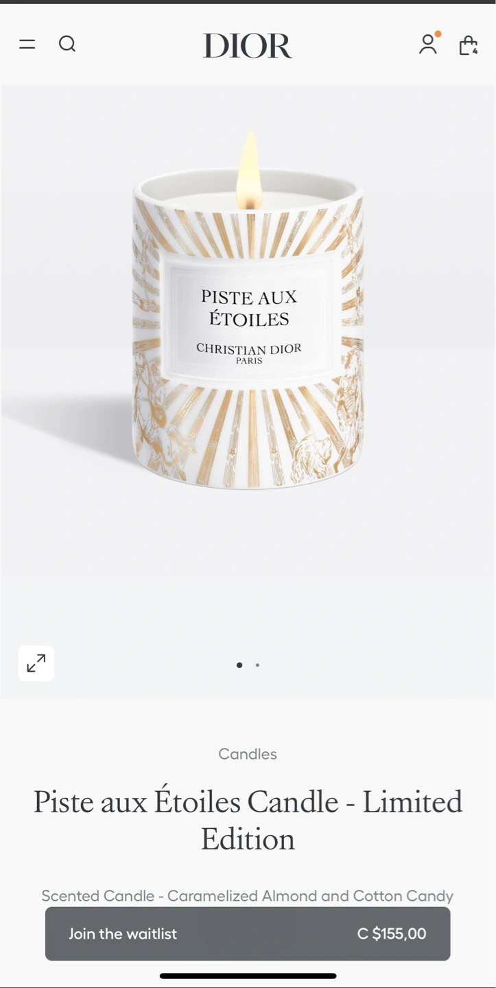 Selling a Dior Piste aux Étoiles Candle - Limited Edition. It's a scented candle with caramelized almond and cotton candy notes. Originally bought for $155.00.