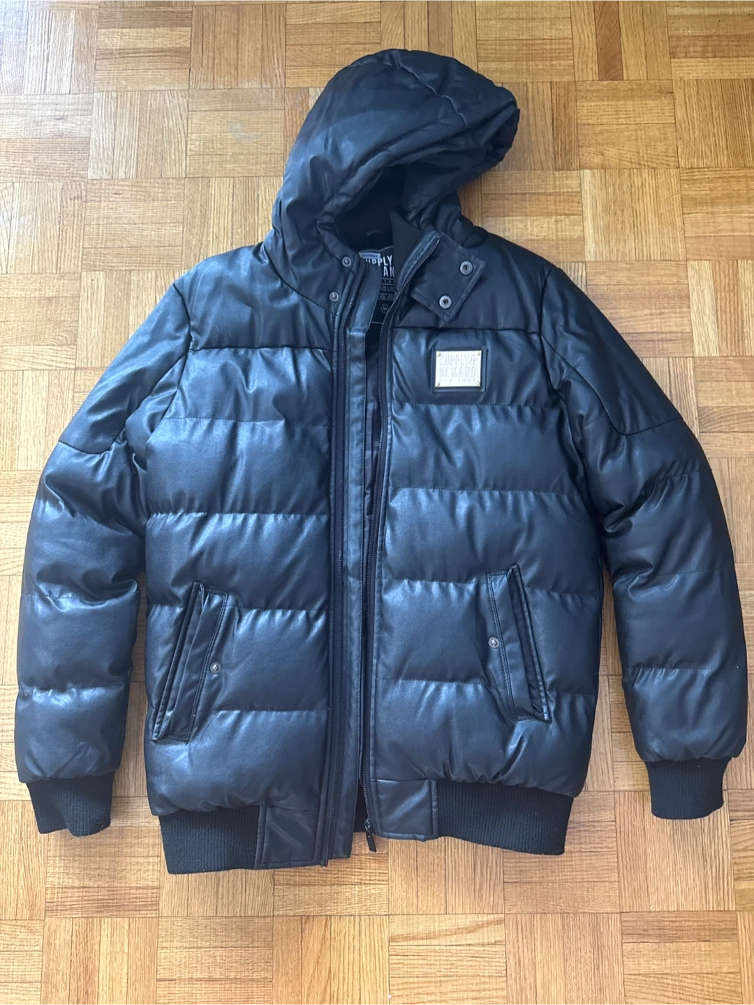 Here's a stylish black puffer jacket from Supply & Demand! Disclaimer!!! Broken zipper, easily replaceable.