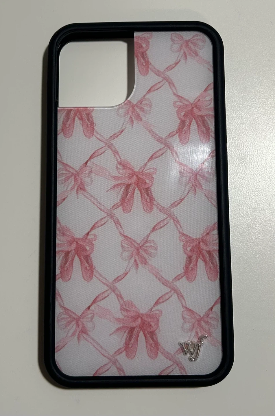 Wildflower iPhone 13/14 case with a cute pink bow pattern! It's in great condition and has been only used a couple of times. Originally goes for $49 CAD on the wildflower website.