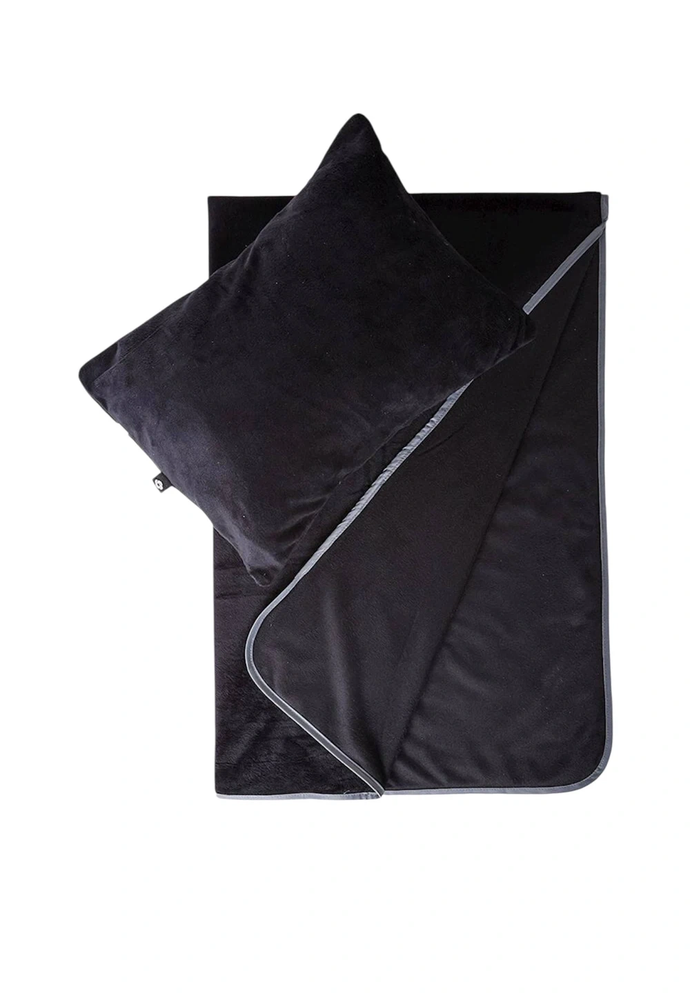 The pillow and the blanket all rolls up together for easy transport! Perfect for travel.