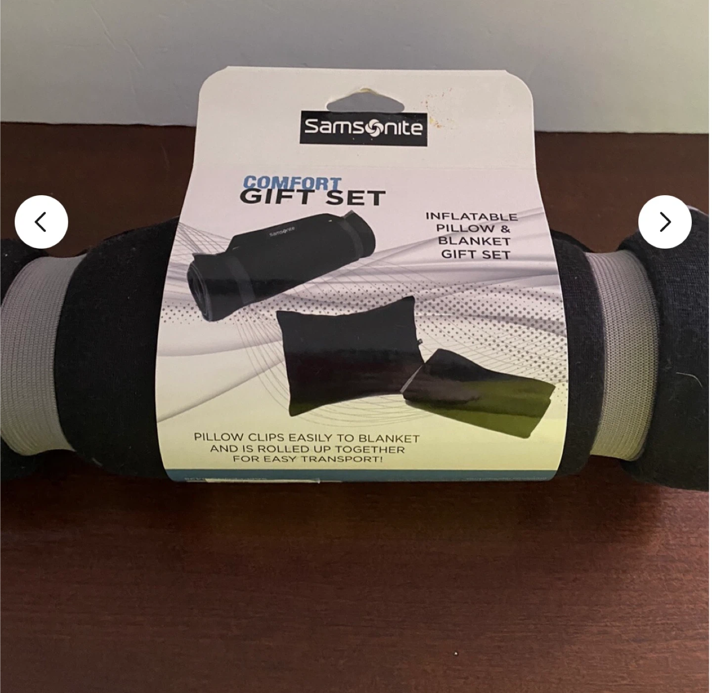 Selling a Samsonite travel blanket and inflatable pillow set.