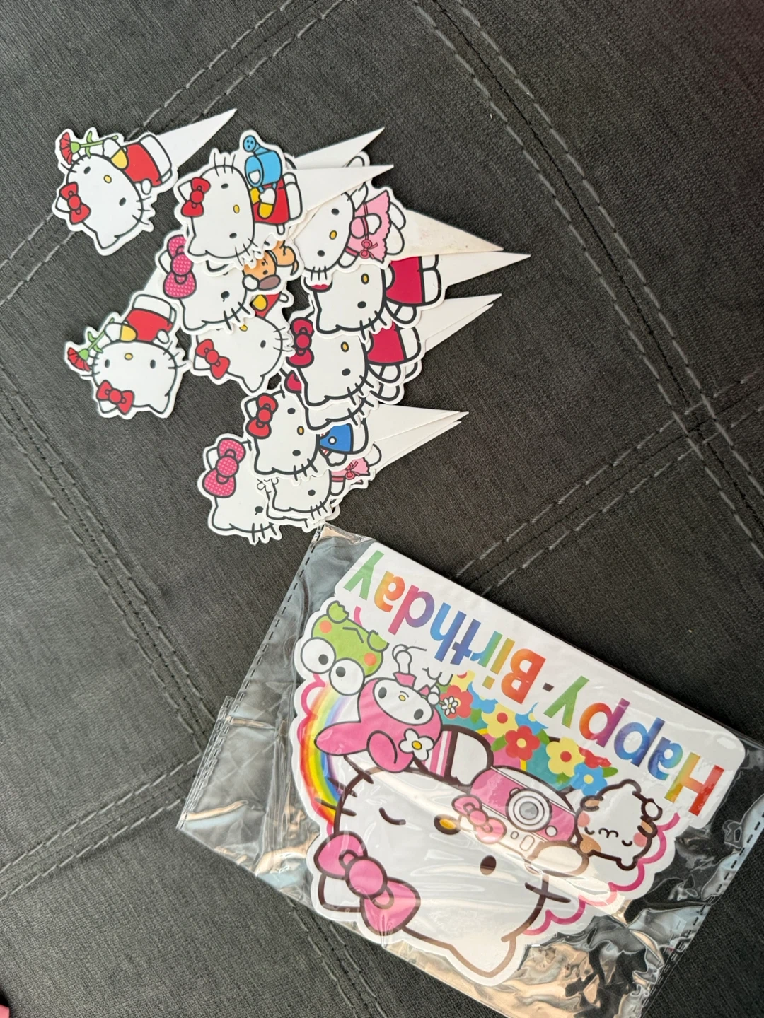 3 foil balloons, happy birthday banner, 7 latex balloons, cake topper, cupcake toppers
