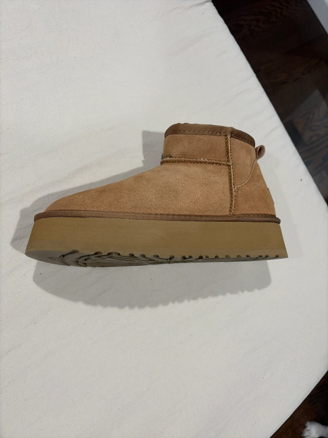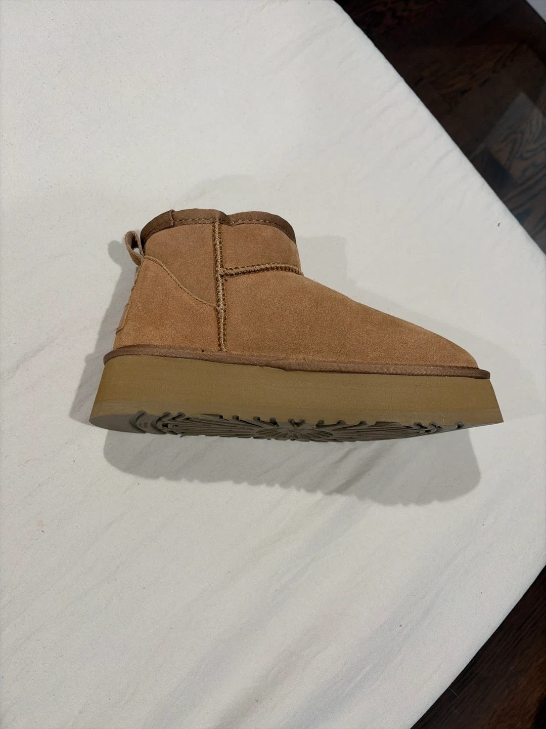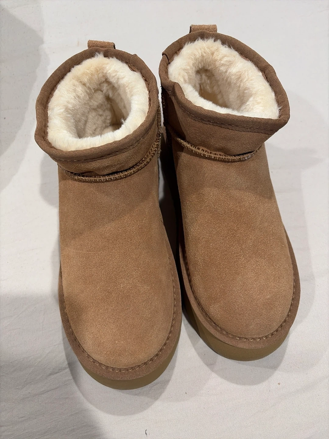 Cozy UGG Women's Mini Platform Boots in a beautiful chestnut color! These boots are in great condition and ready for a new owner. They're super comfortable and stylish, perfect for everyday wear. Check out the photos for a closer look!