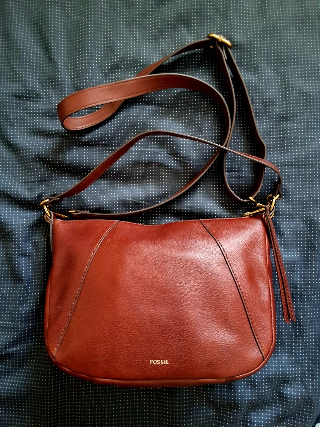 Here's a lovely Fossil shoulder bag in brown leather. It's in great condition and perfect for everyday use! The classic design will never go out of style