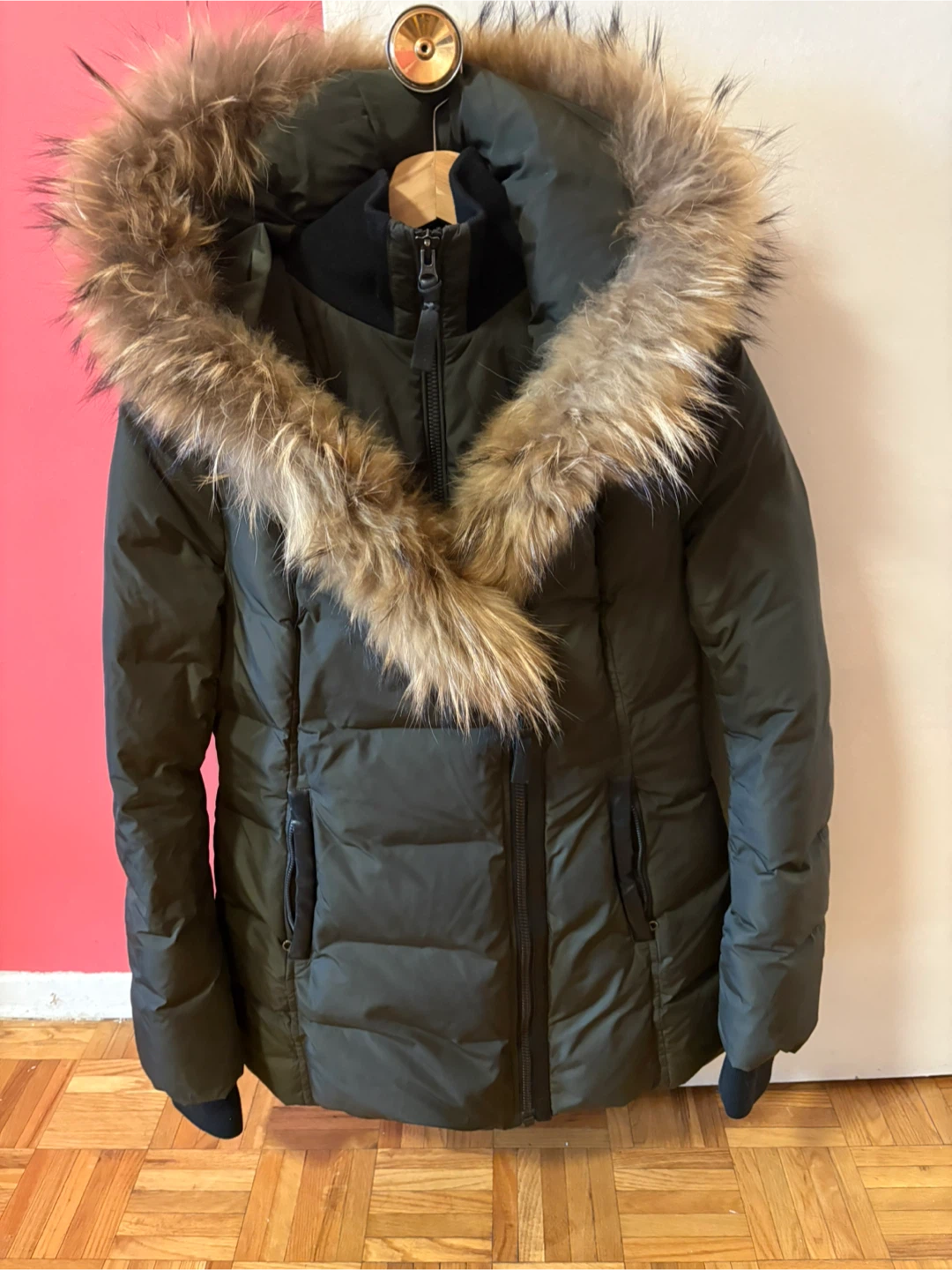 Selling a gently used Mackage Adali down winter coat in size M. It's a beautiful coat with a fur-trimmed hood, perfect for staying warm during the cold Canadian winters! It's in great condition and ready for a new owner