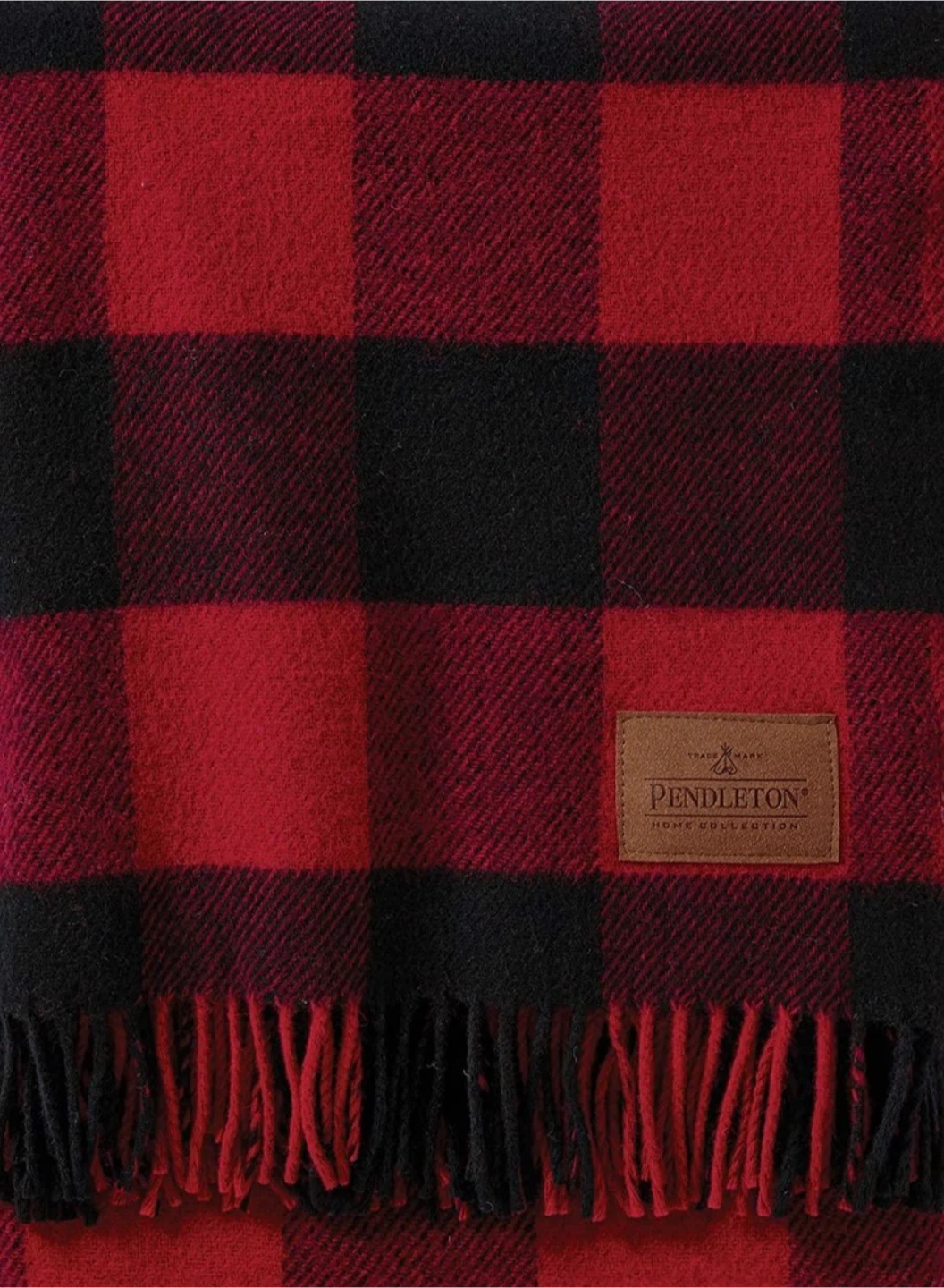 Pendleton Red & Black Wool Blanket with Leather Carry Harness