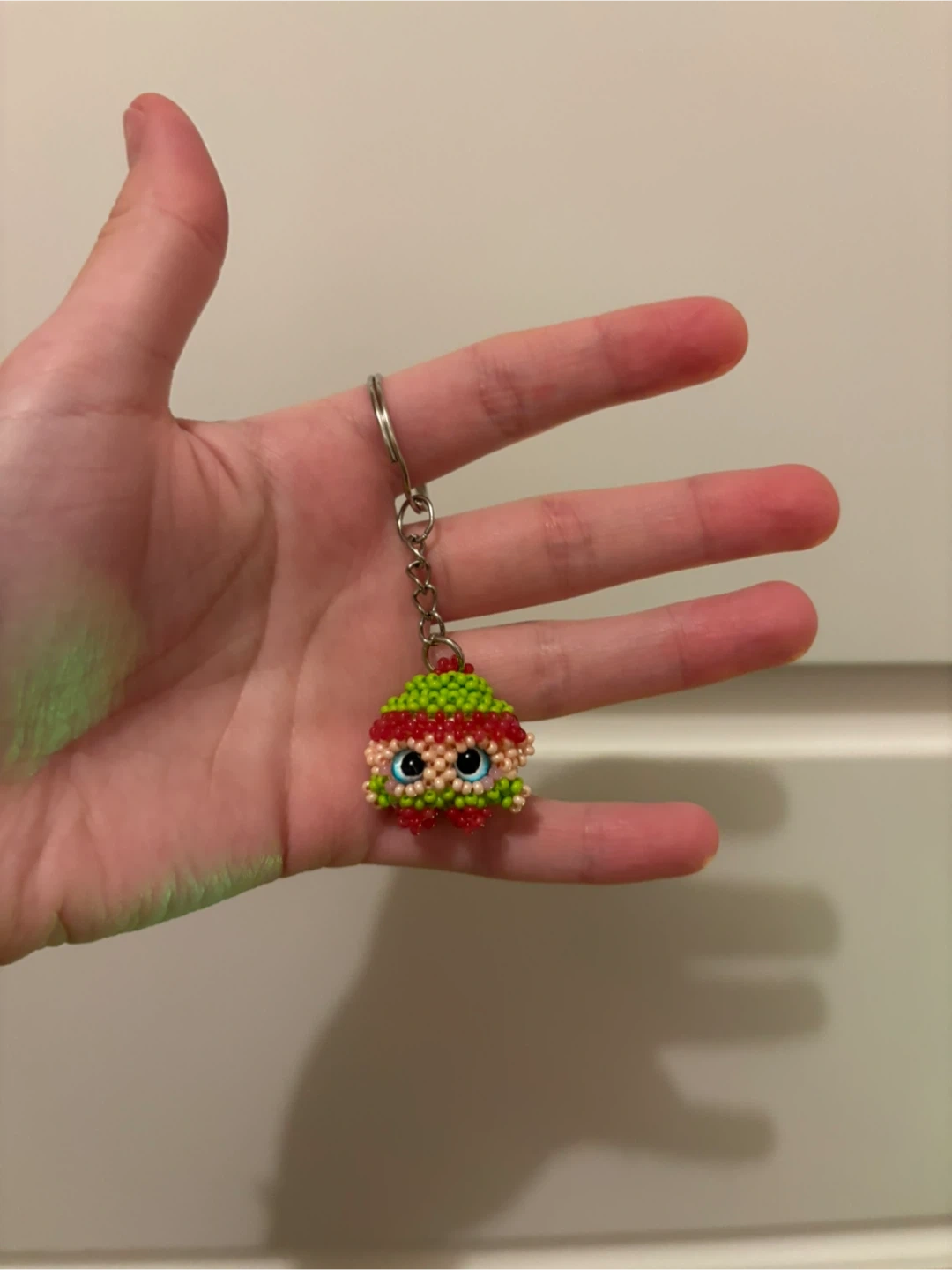 A cute, handmade beaded keychain! It's in great condition and ready to add some charm to your keys or bag