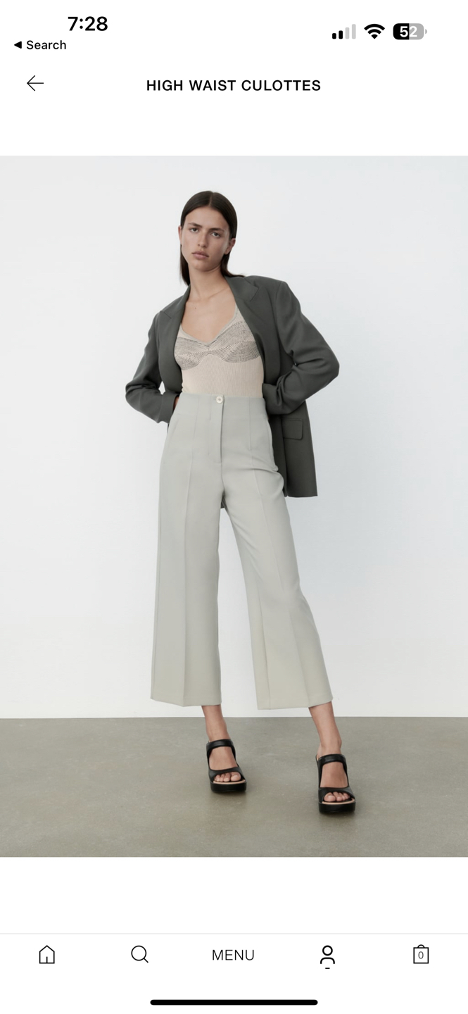706High waisted culottes from Zara in a dusty green colour. Fits kind of small and still has tags on, purchased during the pandemic and missed the return date. ❗️Needs to be gone by early July! Whatever isn’t picked up by then will be donated. Feel free to browse my other listings if you’re interested! If you purchase multiple items I can provide a discount. :) Condition: New Brand: Zara Size: M