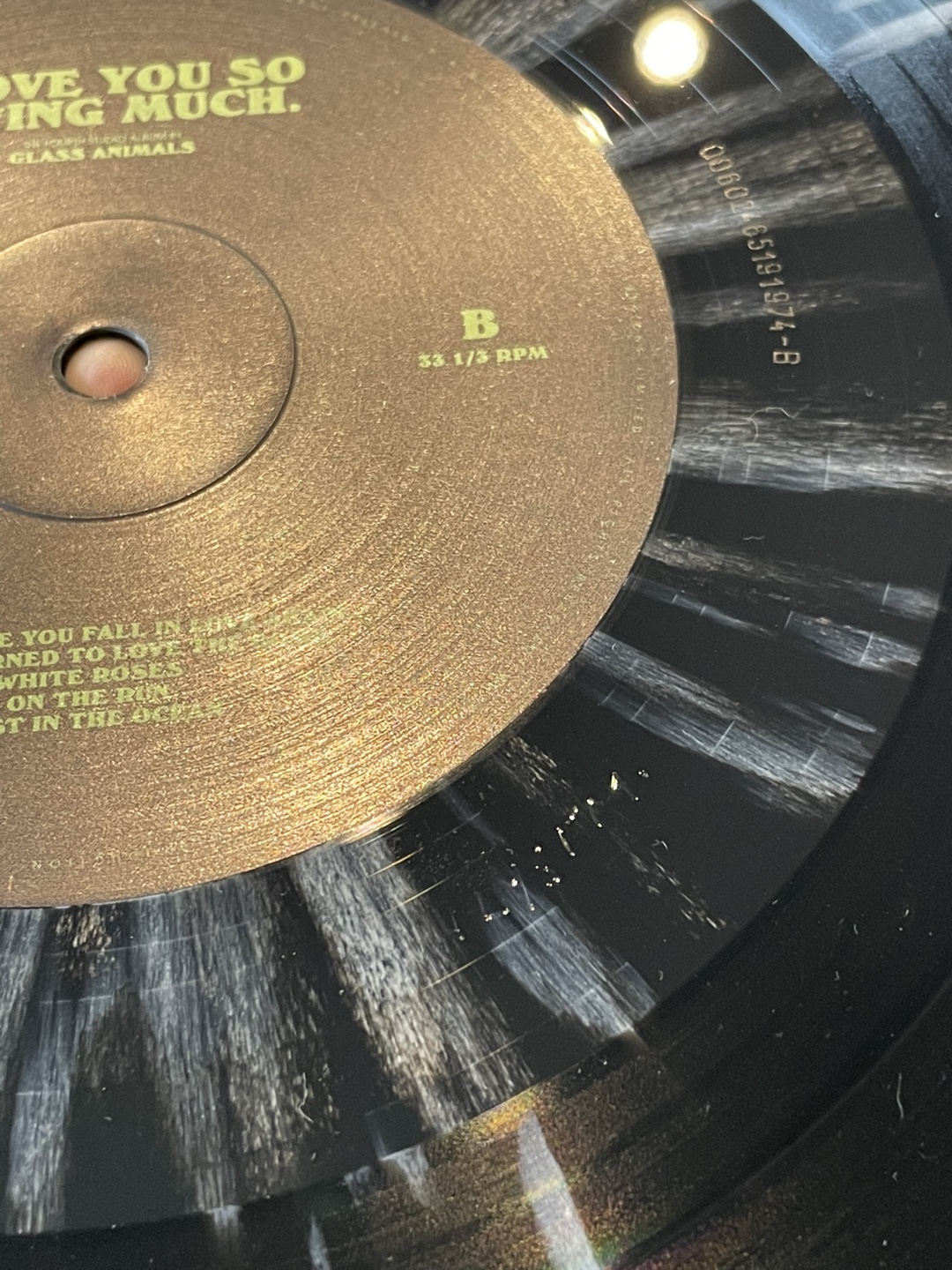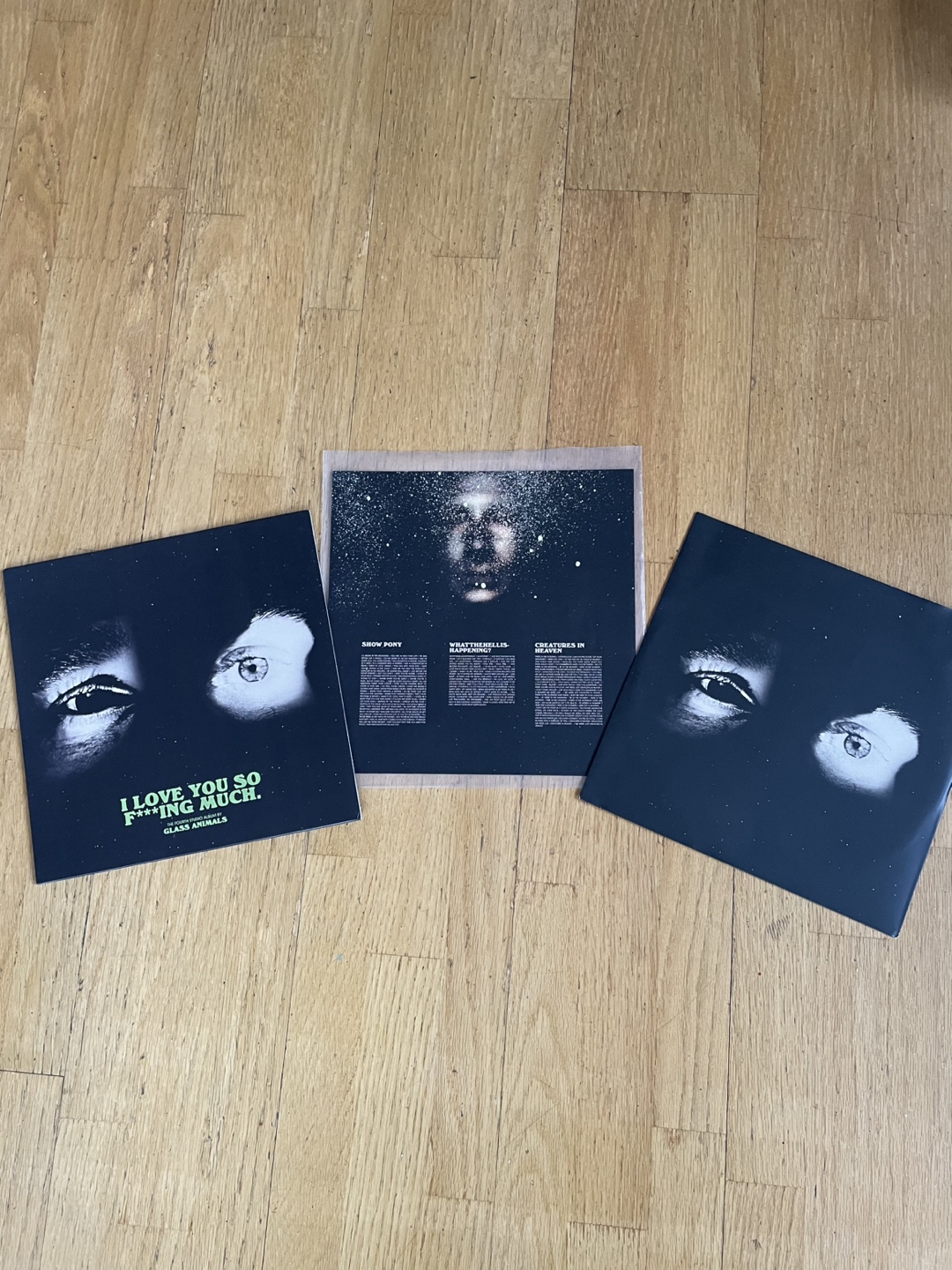 Limited edition splatter edition vinyl of the Glass Animals “I Love You So F***ing Much” album. It comes with ILYSFM etched on the inner rim of each side by the band themselves (this does not affect the quality of the play).