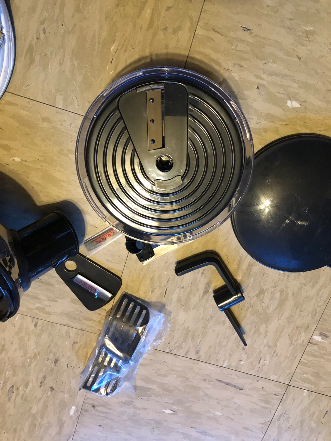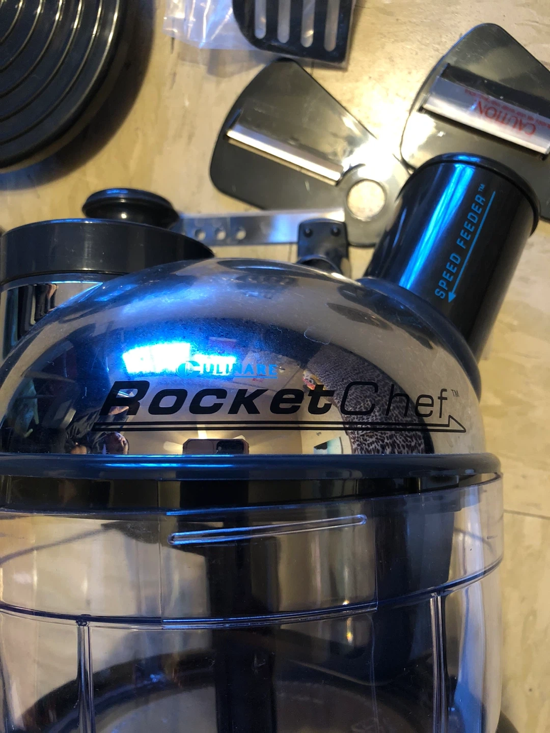 Selling a Rocket Chef Culinary Slicer. It appears to be in good condition and includes various components and accessories. Perfect for quickly slicing and dicing your favorite vegetables!
