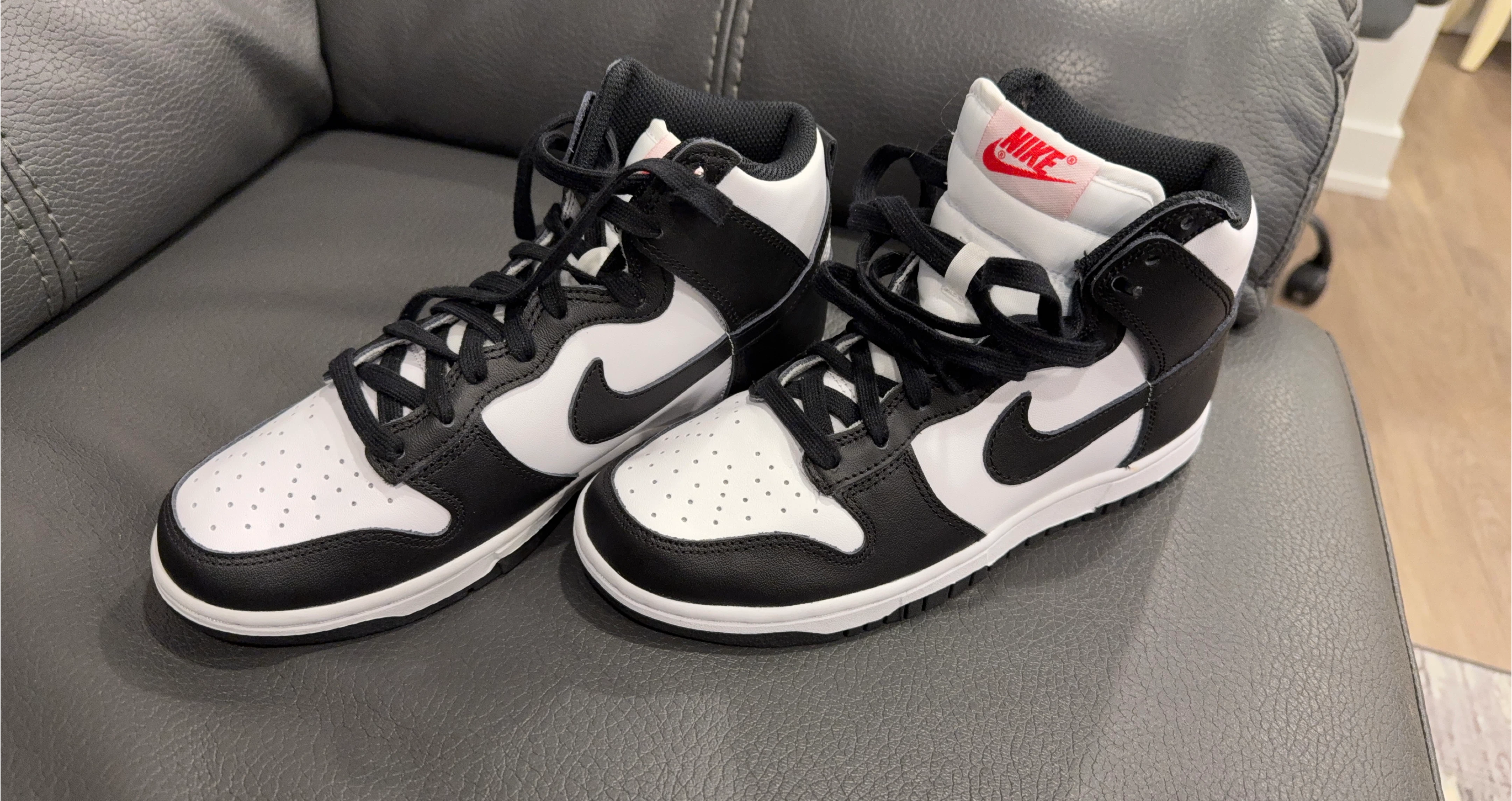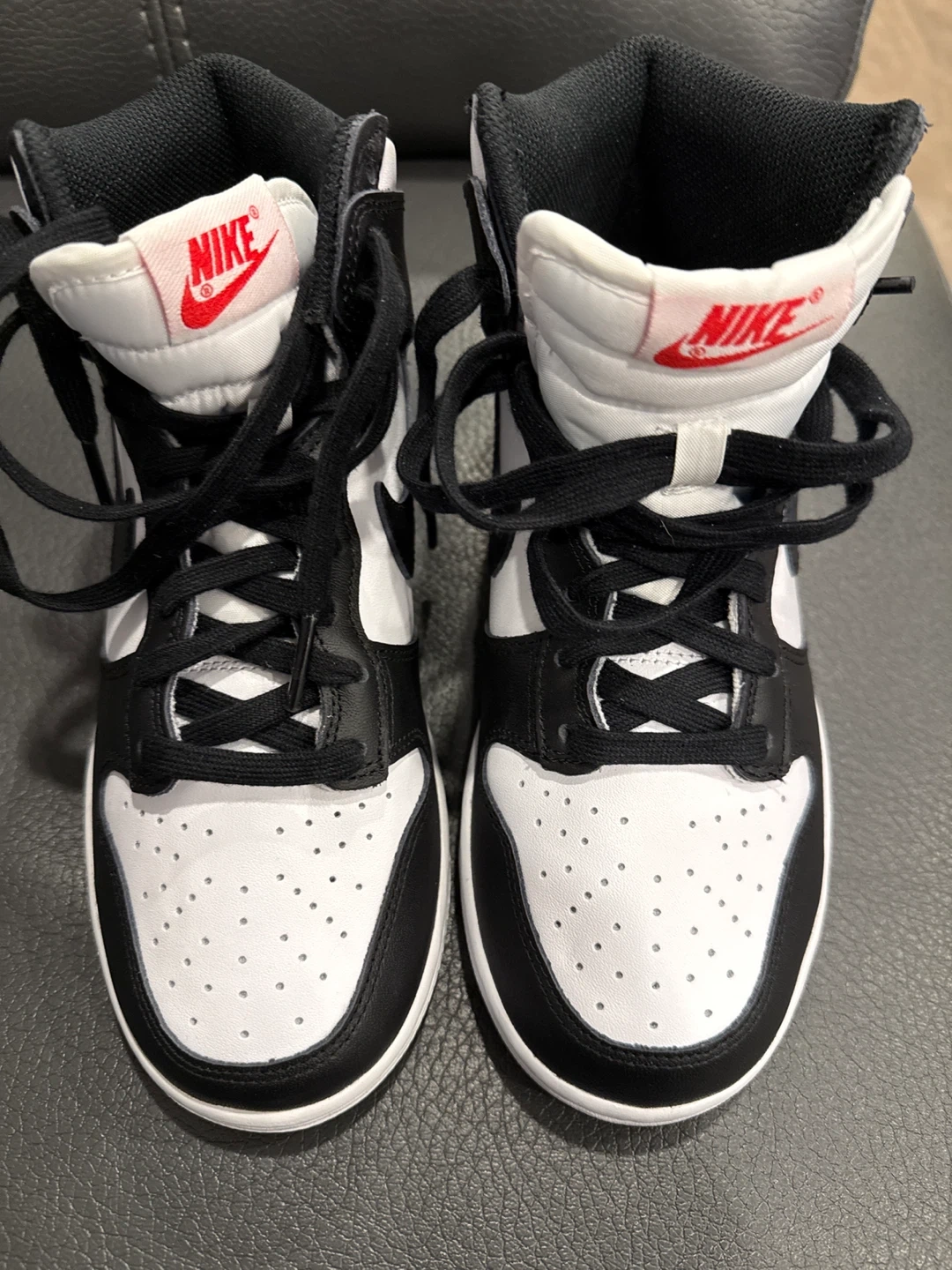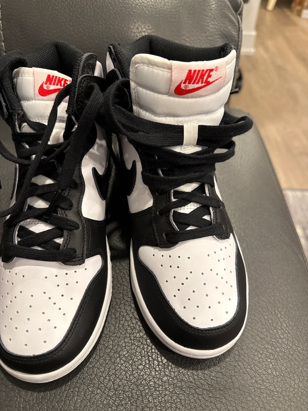 Selling a pair of Nike Dunk Highs in the classic Panda colourway! These are in great condition never used and ready for a new owner. They're super stylish and versatile, perfect for adding a bit of flair to any outfit