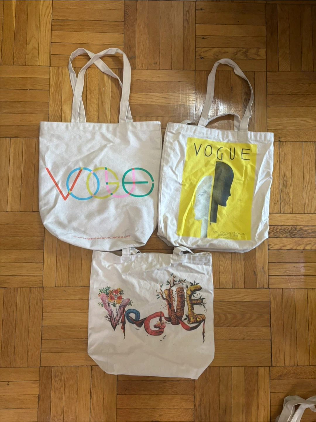 3 Vogue Fall Fasion bags from 2019, 2020, and 2022. A little wrinkly but clean & in great condition. $10 takes all 3.