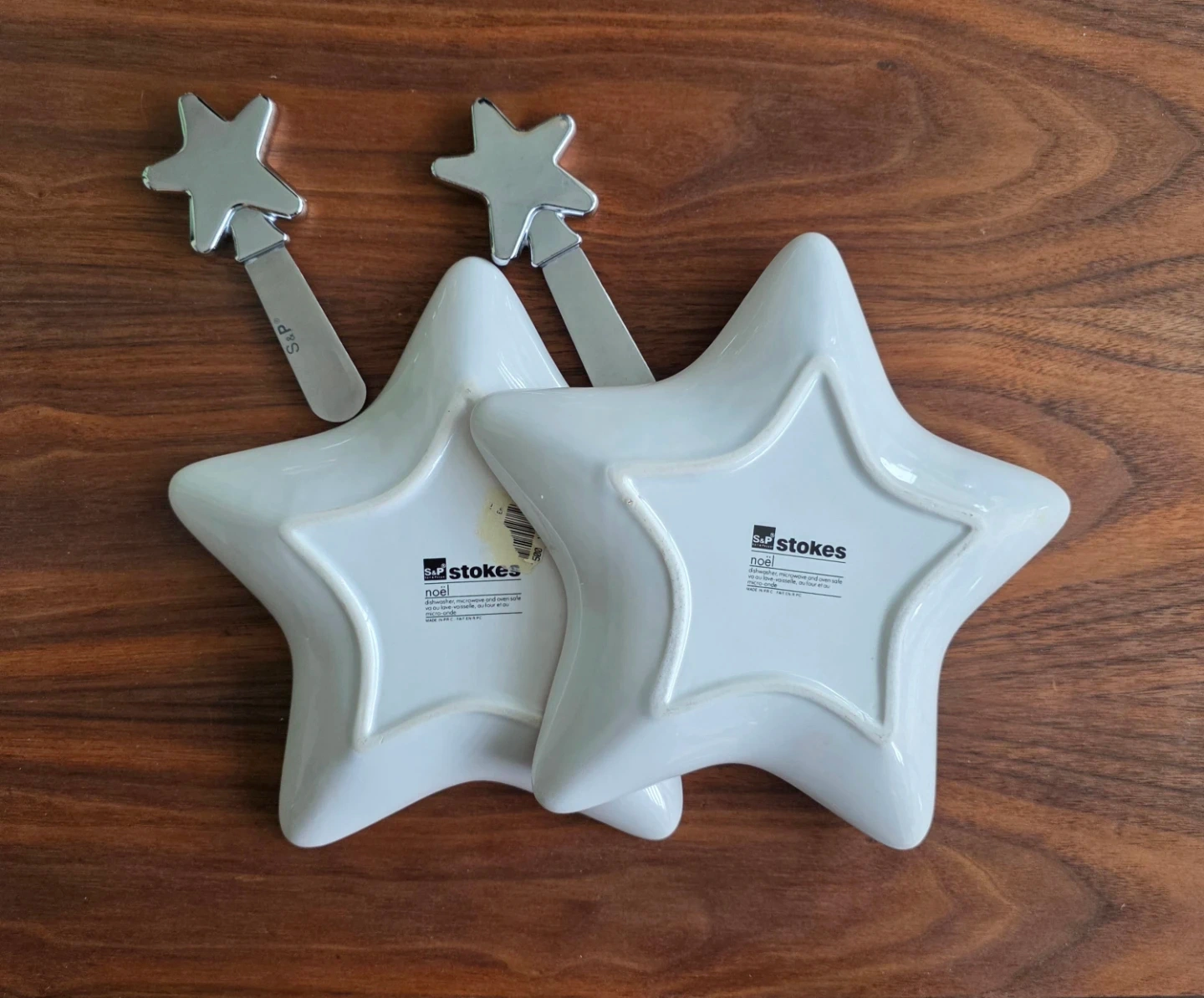 Matching knives/spreader included. The plates are in nearly-new state but the star shape on the knives has a slight bit of vintage wear.