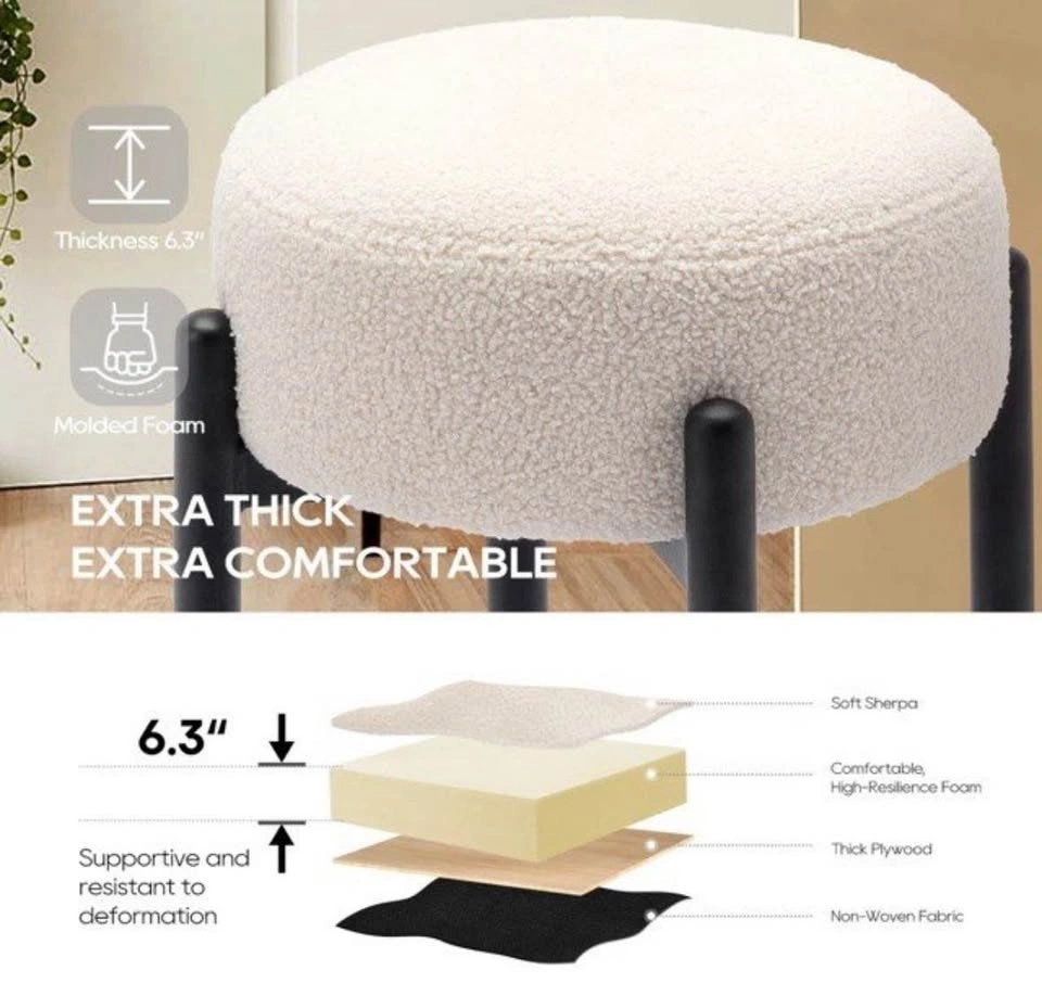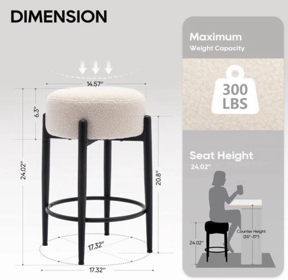 Set of counter height Colamy sherpa (lamb wool) stools, brand new in box.