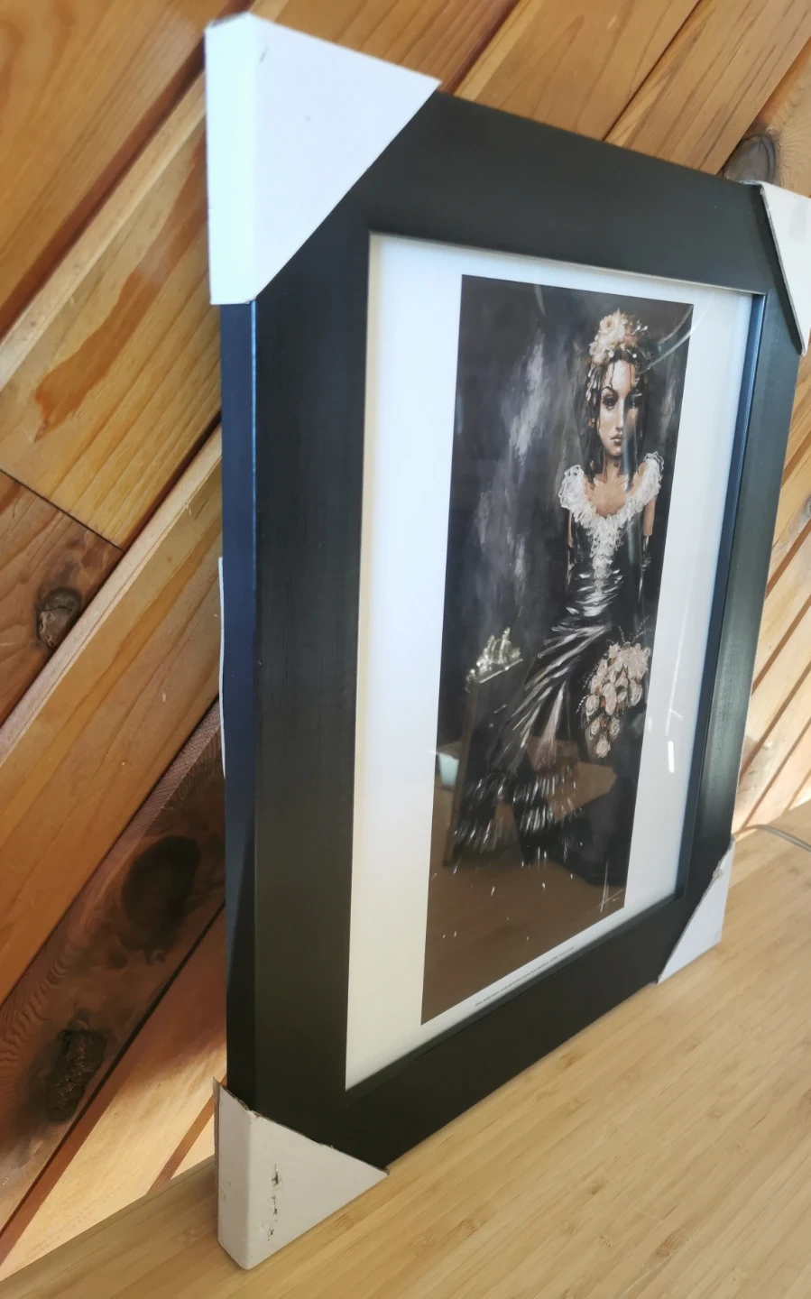 Gallery framed, in great condition, never been used, about 17 inch long, 14 wide.