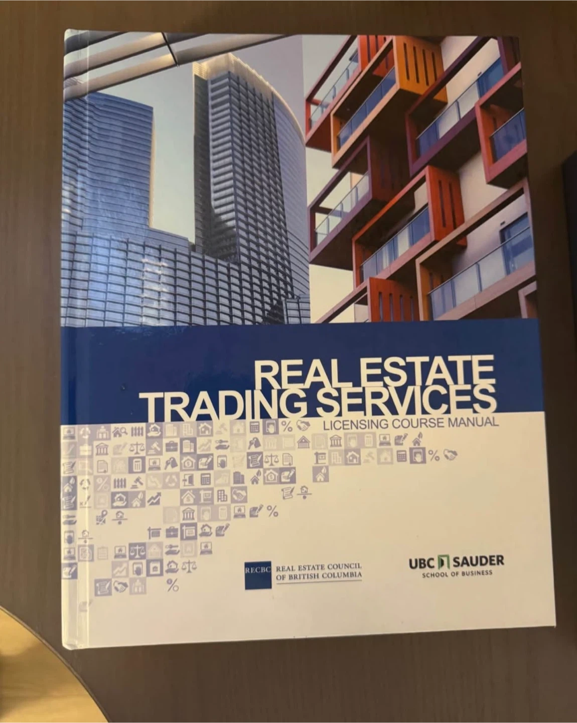 Selling a Real Estate Trading Services Licensing Course Manual from UBC Sauder School of Business. It's in great condition and ready for its next user! I used digital version so it’s in mint condition. ‘17 version but the same for exams