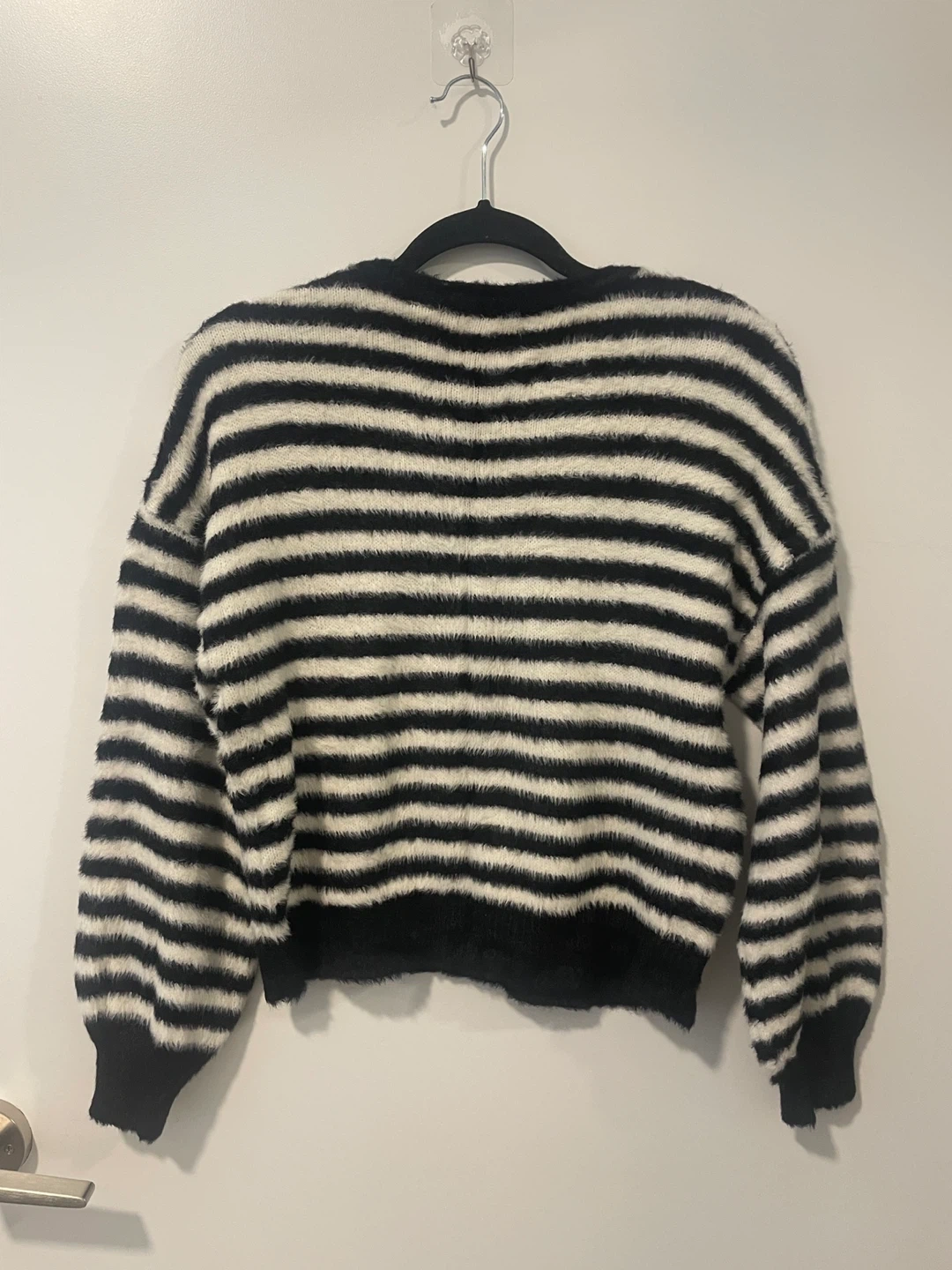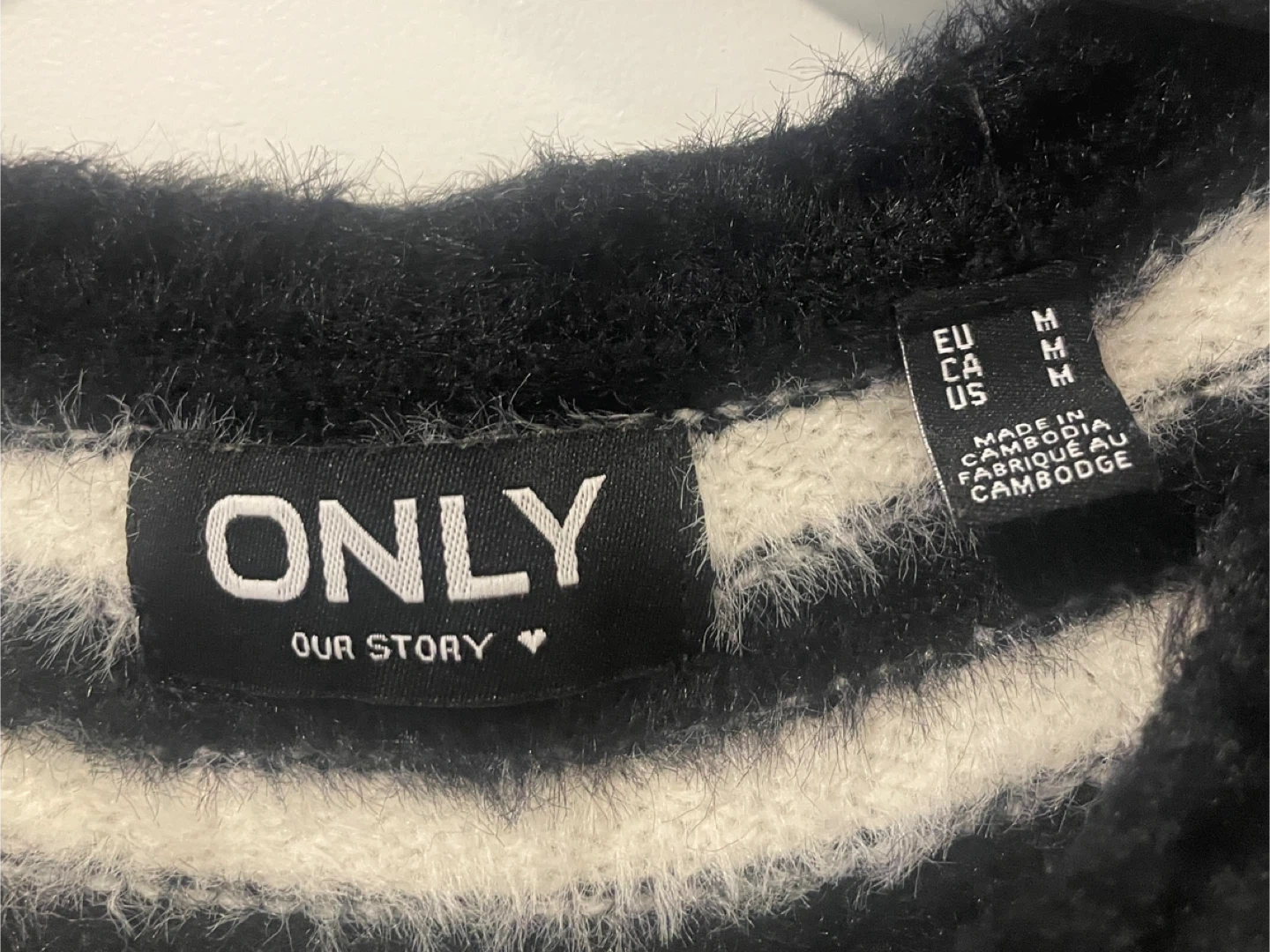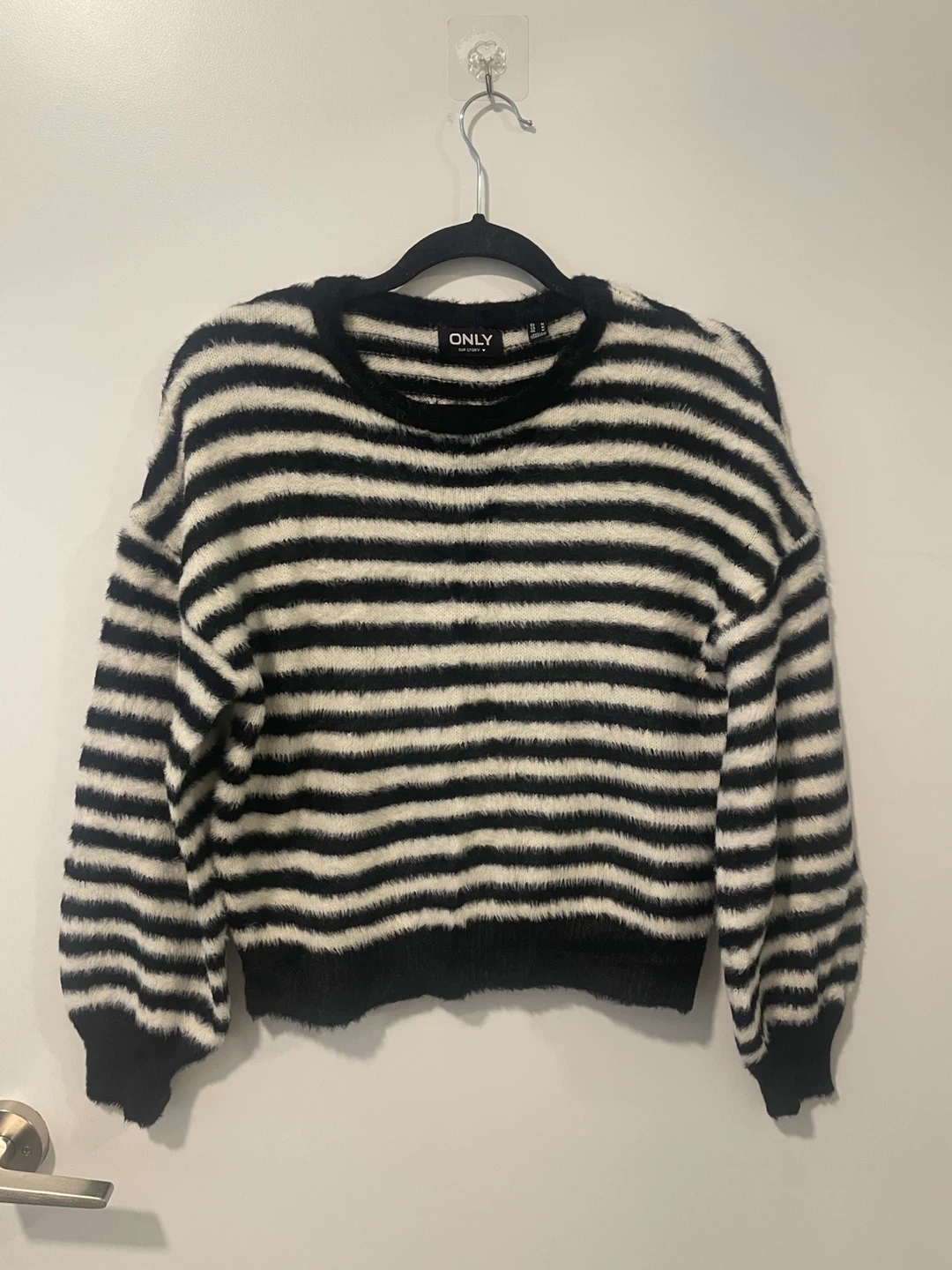 Selling a cute ONLY sweater in a black and white striped pattern! It's a size medium and in great condition. Perfect for adding a stylish touch to your wardrobe!