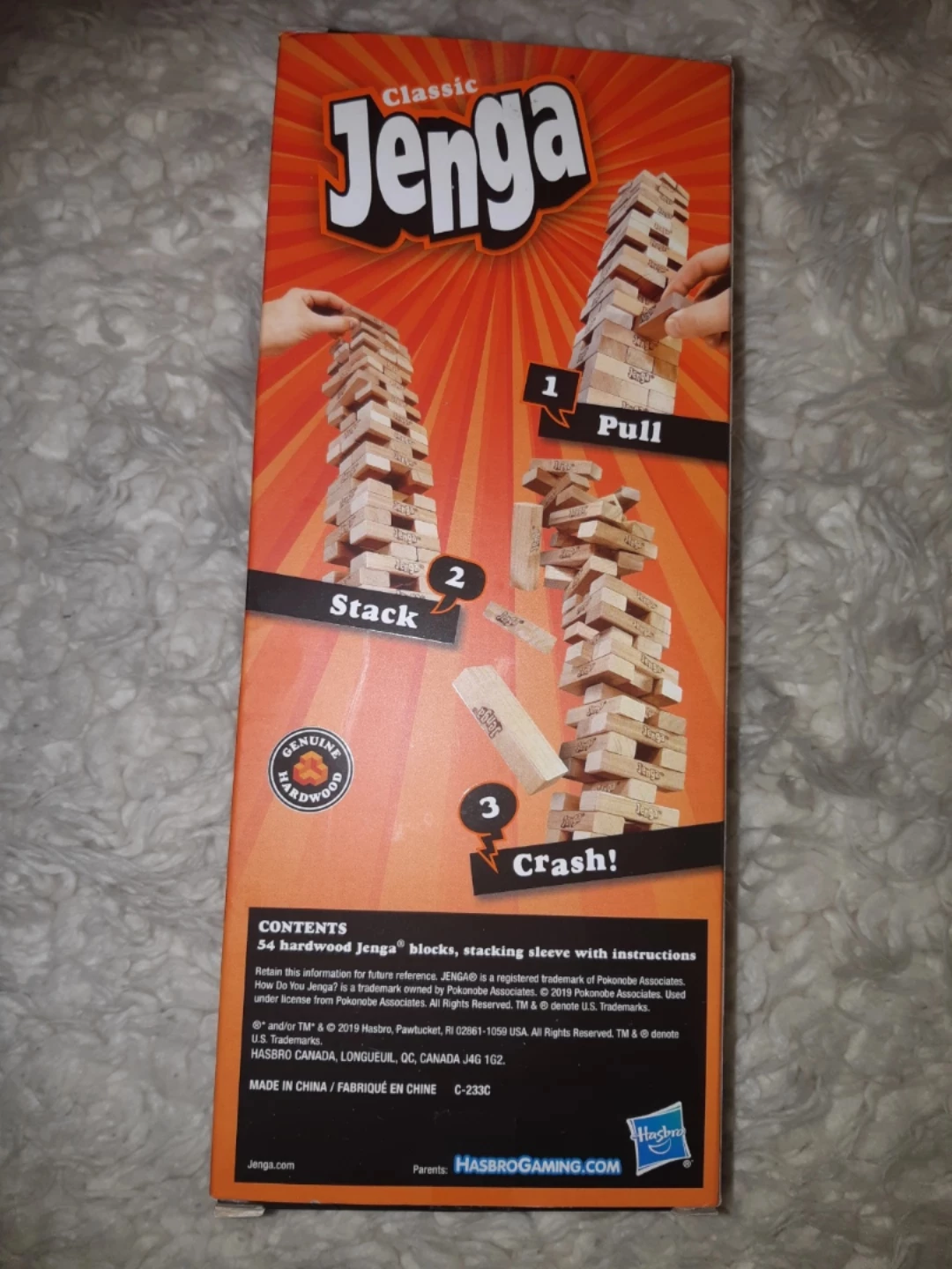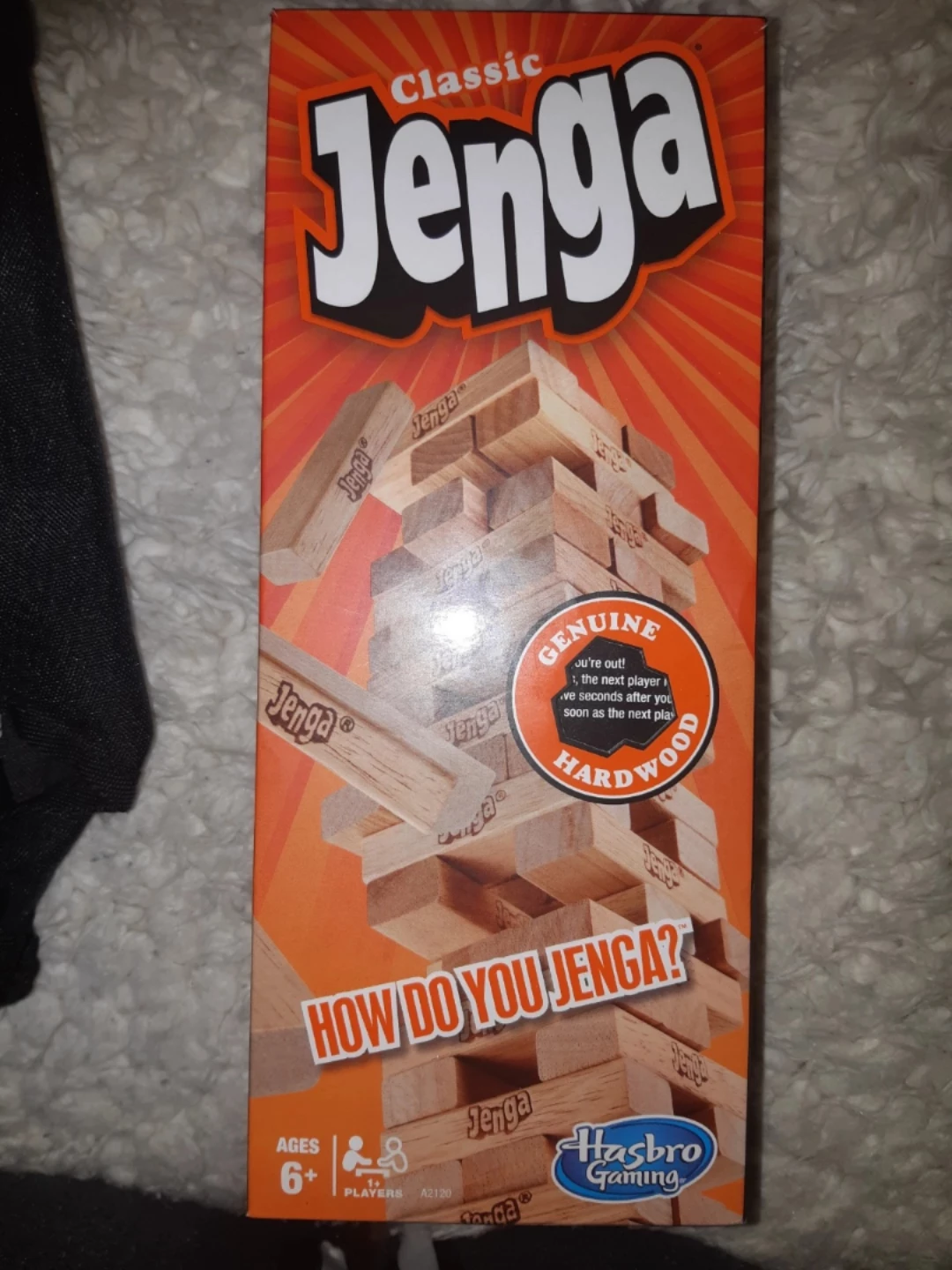 Selling a classic Jenga game! It includes 54 hardwood Jenga blocks, a stacking sleeve, and instructions. Great for family game nights or playing with friends!