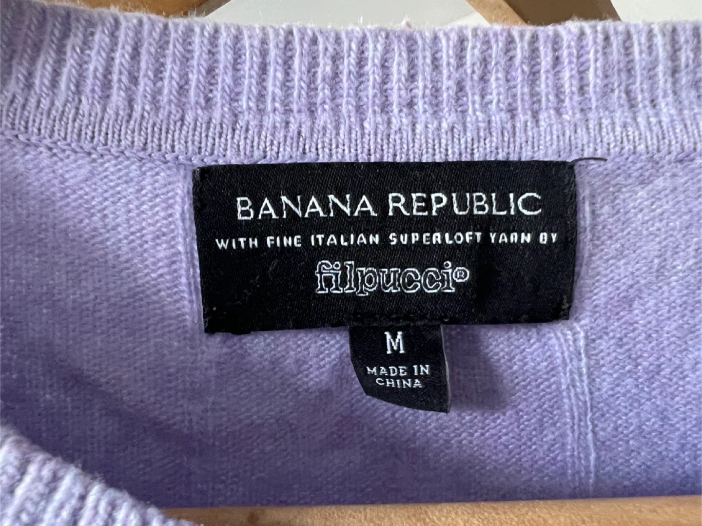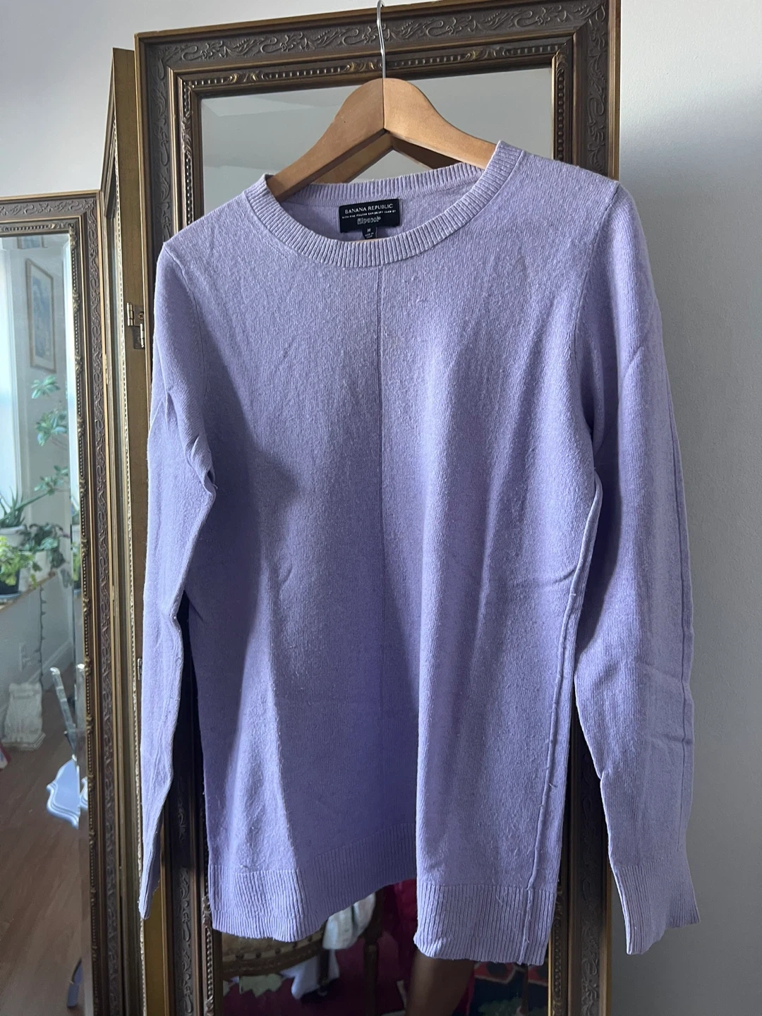 Selling a Banana Republic lavender sweater in size medium. It's made with fine Italian Superloft yarn by filpucci. Wool. Great for layering or wearing on its own!