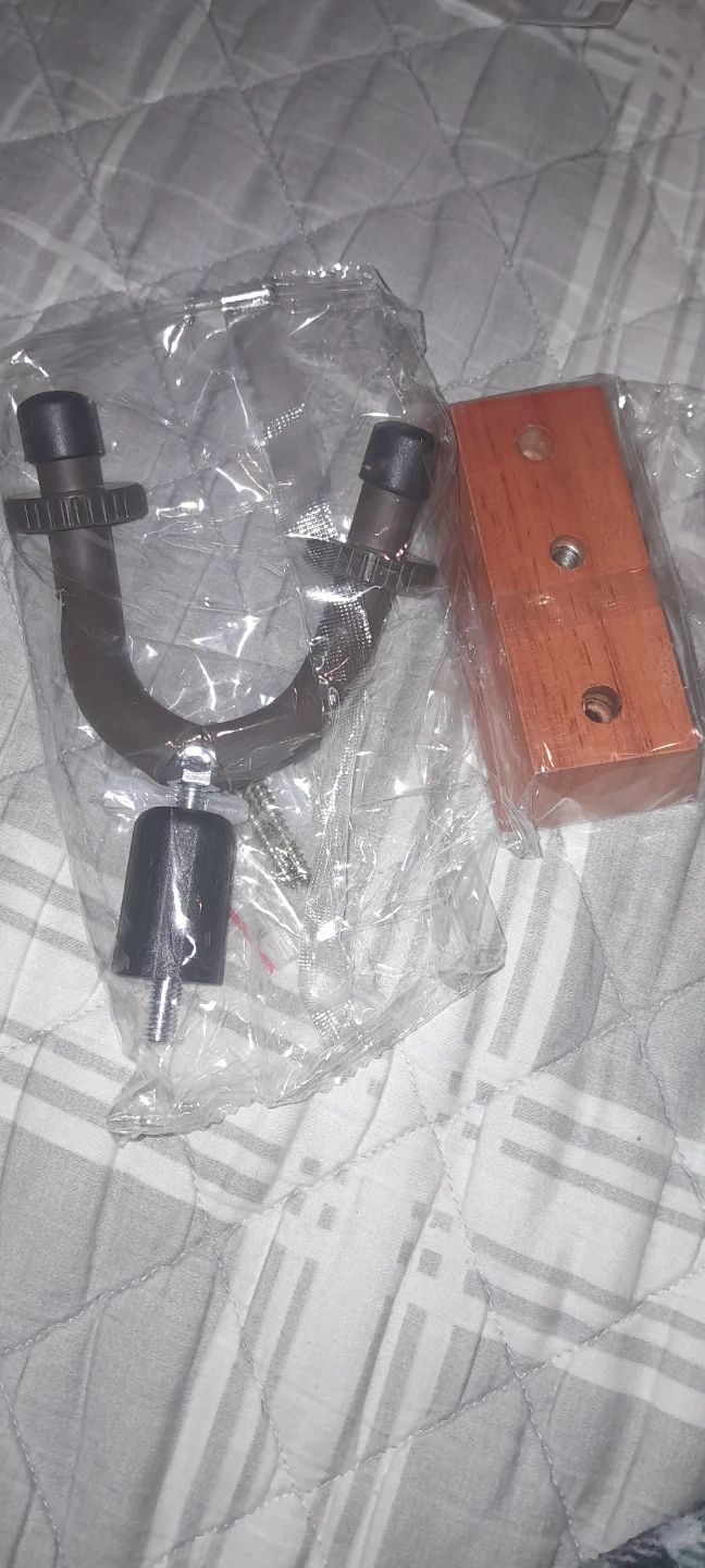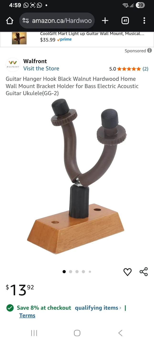 Selling a New Walfront guitar hanger hook in black walnut. It's a wall mount bracket holder suitable for bass, electric, and acoustic guitars, as well as ukuleles. It's in great condition!